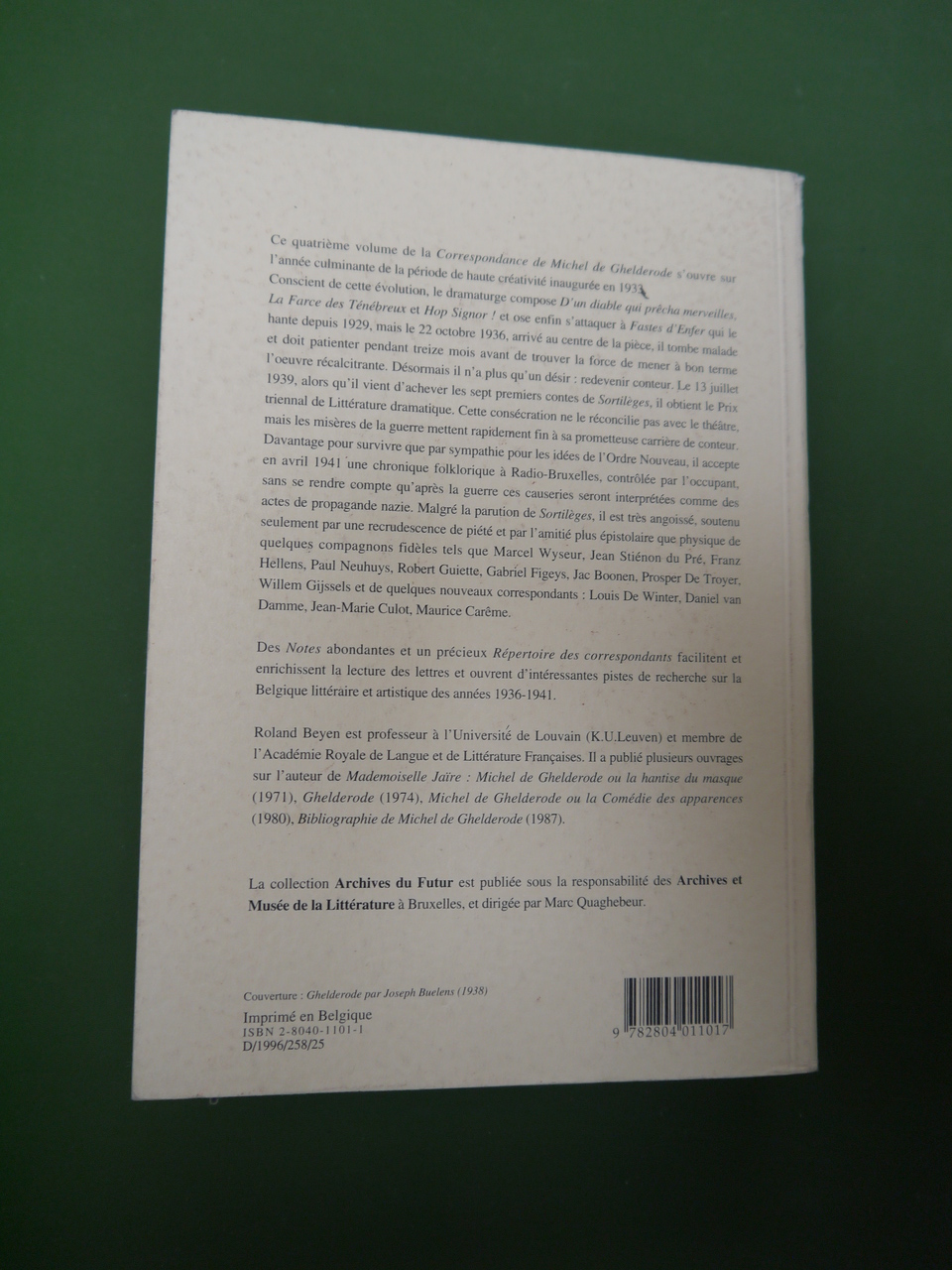 Soyez le premier à laisser votre avis sur “Correspondance de Michel de Ghelderode 1936-1941, (édition) Roland Beyen, Labor, 1996”