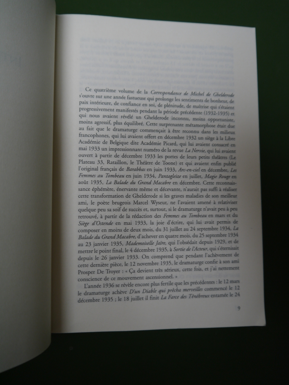 Correspondance de Michel de Ghelderode 1936-1941, (édition) Roland Beyen, Labor, 1996