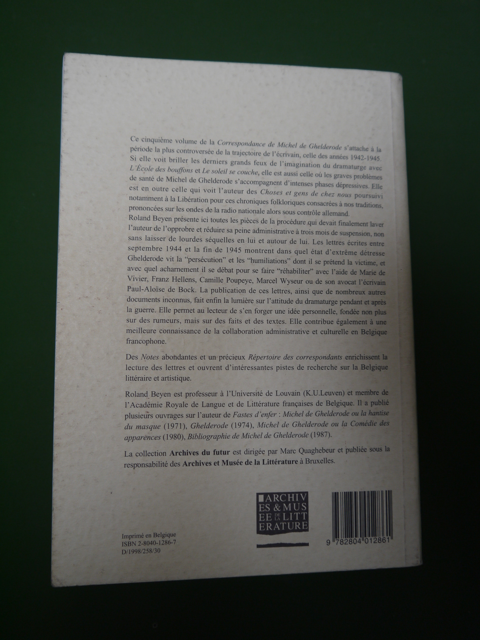 Correspondance de Michel de Ghelderode 1942-1945, (édition) Roland Beyen, Labor, 1998