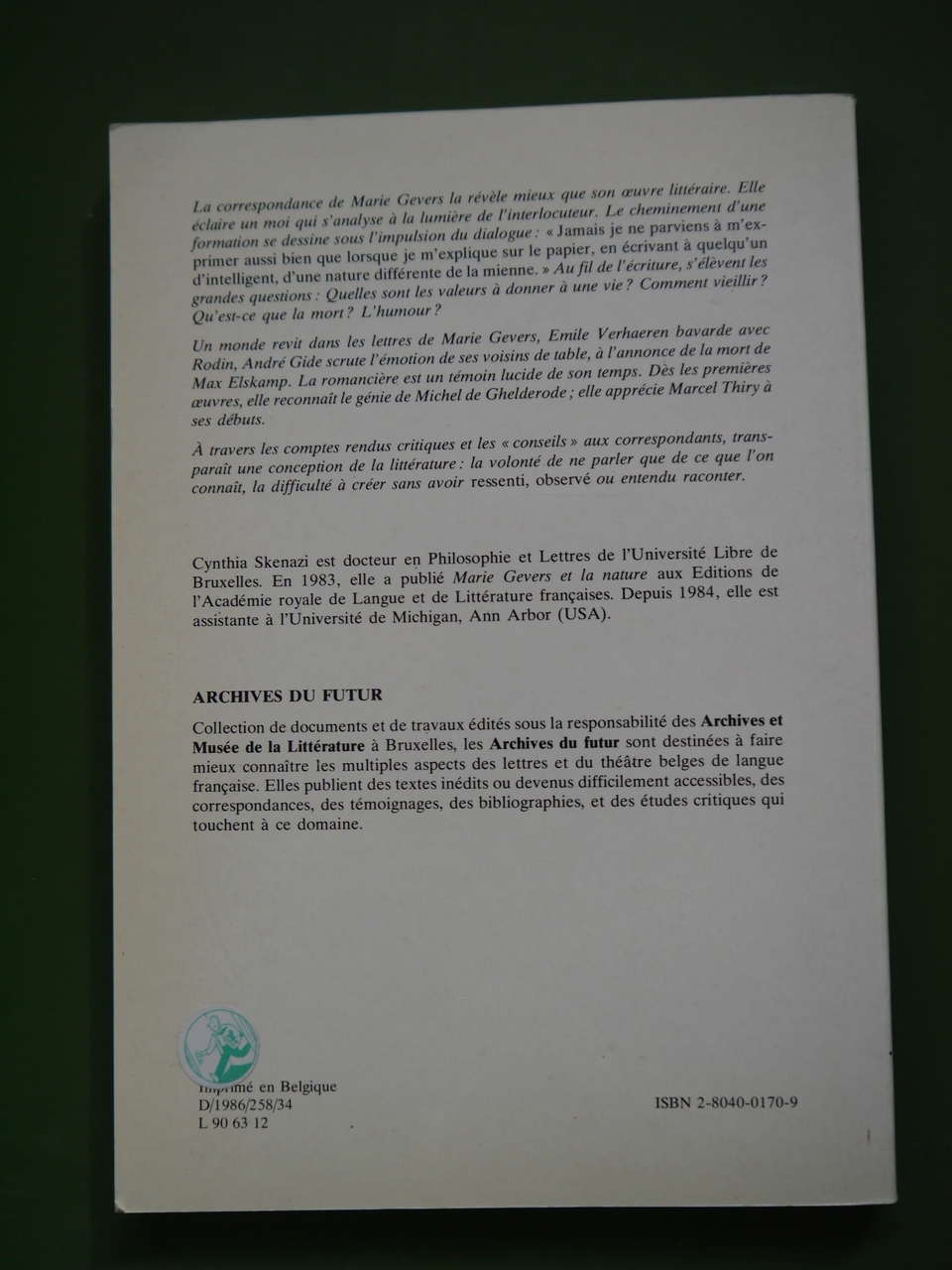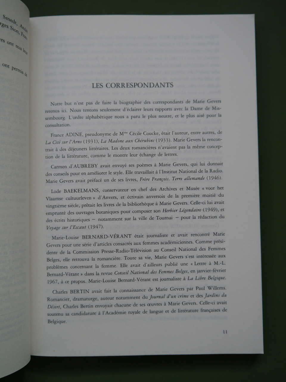 Extraits des correspondances entretenues avec notamment de nombreux autres auteurs belges: de Ghelderode, Haulot, Lilar, Muno…
