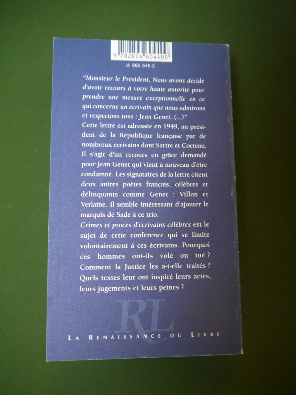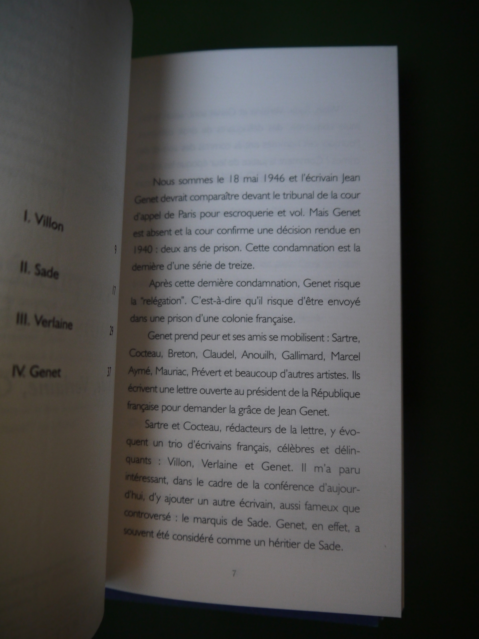 Dans la collection « Conférences des Midis de la poésie ». Villon, Sade, Verlaine, Genet.