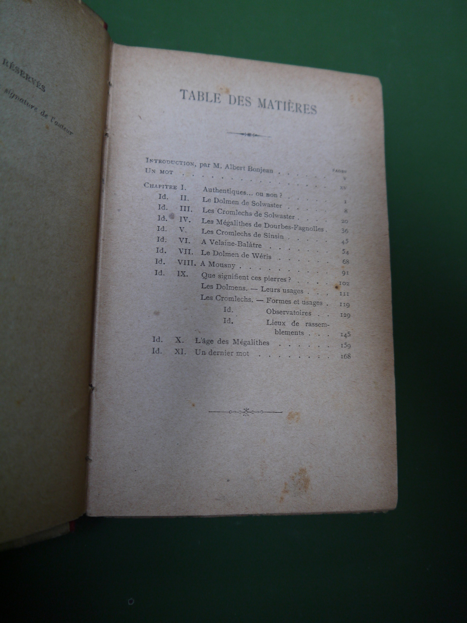 « A Solvaster lez-Spa, Dourbes-Fagnolles, Sinsin, Velaine-Balâtre, Wéris, Mousny-Laroche », mais aussi la Fagne Maron et Malchamp, près de Spa. Avec 32 figures. Mention de « 1889 » en fin du chapitre X.