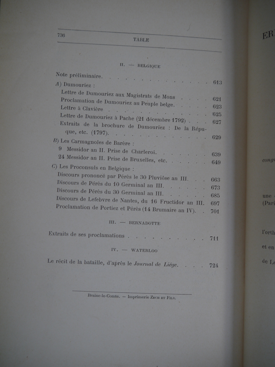 Secondé édition, d’un tirage de 500 exemplaires – la première datait de 1901 – par un auteur de Charleroi. « L’histoire de cette grande époque, qui a finalement transformé l’Europe au détriment de la France même, a été pour aindi dire renouvelée depuis les ouvrages de Louis Blanc et de Michelet. »