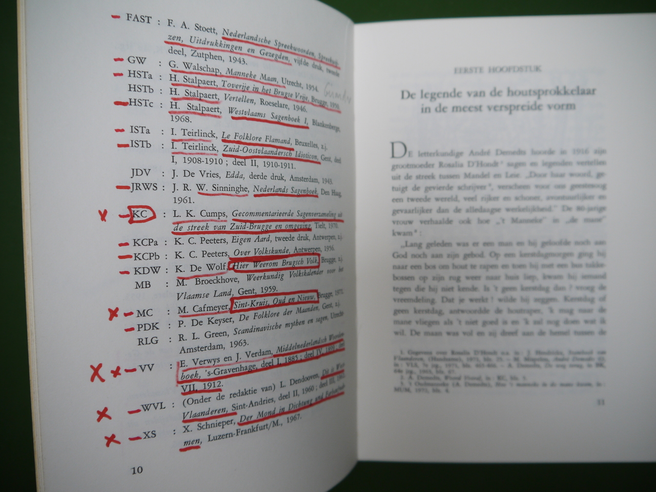 Petite tentative de comparaison d’histoires flamandes mentionnant le « houtsprokkelaar », soit le ramasseur de bois… Nombreuses annotations dans l’exemplaire en vente.