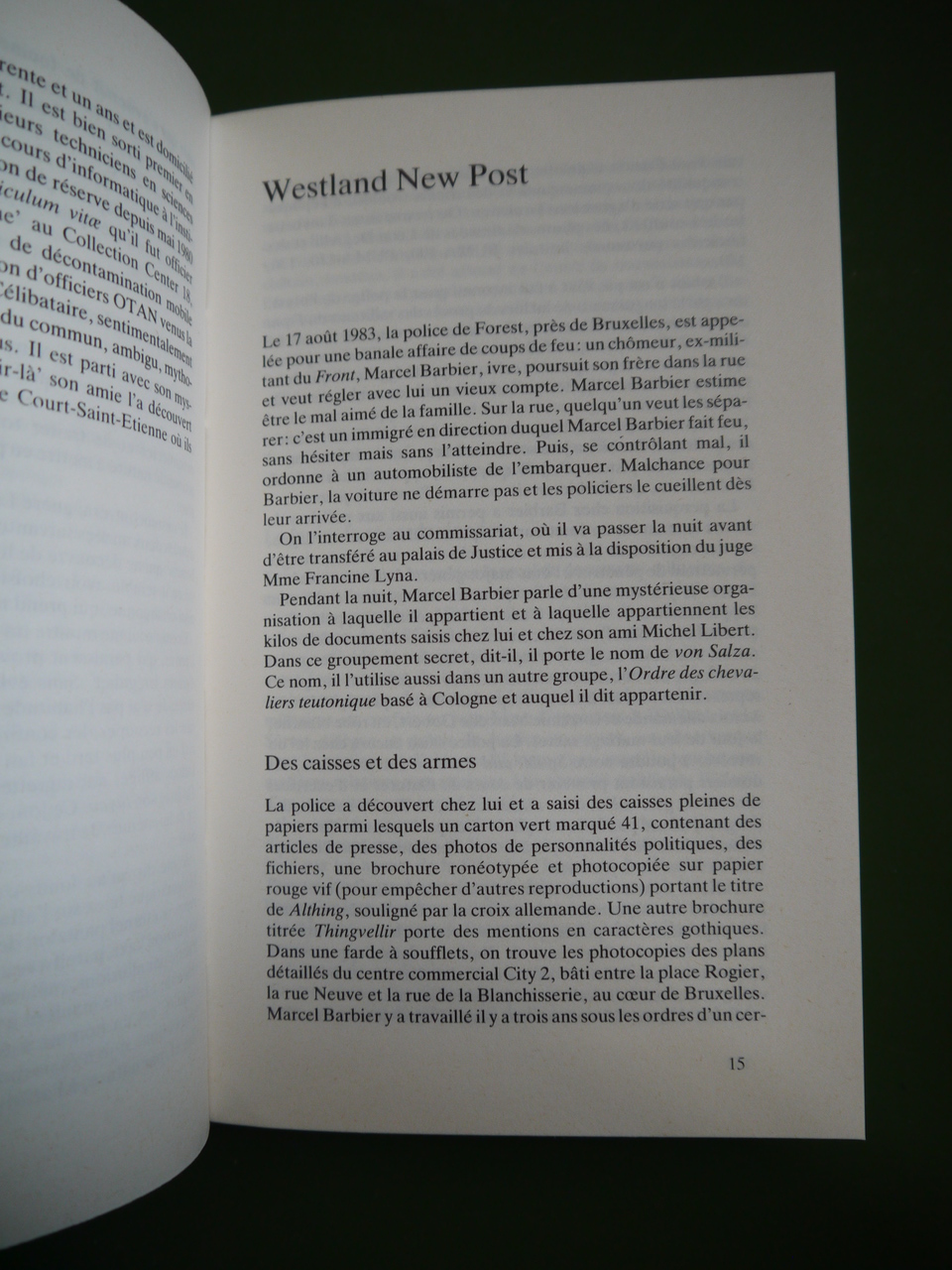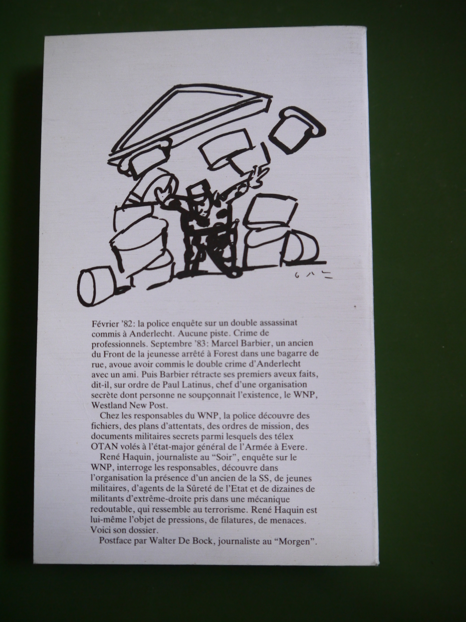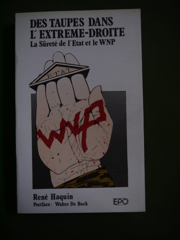 « La sûreté de l’Etat et le WNP », précise le sous-titre. Un ouvrage bizarrement non daté, mais relatif aux manipulations politiques en tous sens de ces années ’80 de sinistre mémoire. René Haquin était reporter au Soir. L’exemplaire proposé est taché en couverture.