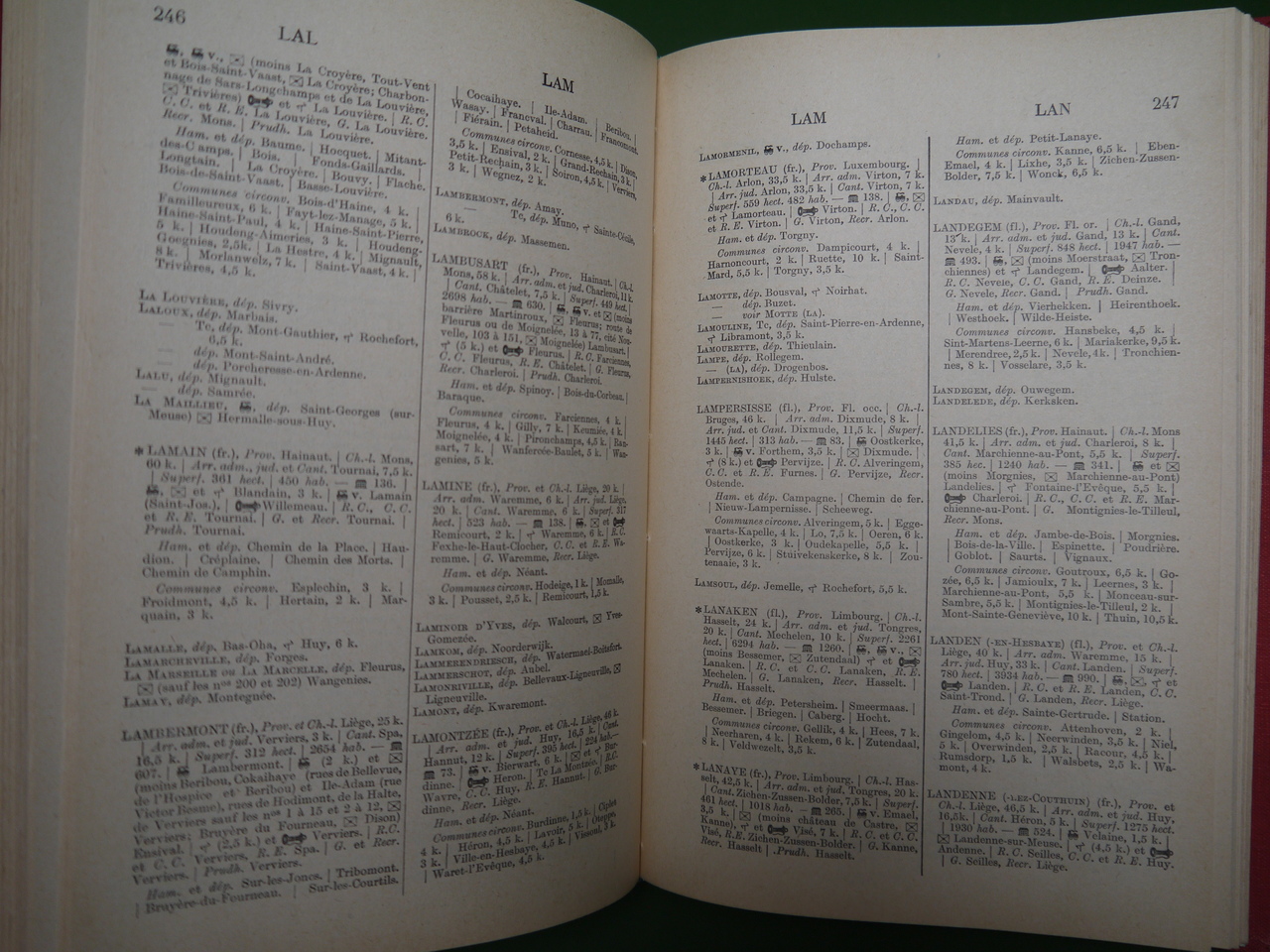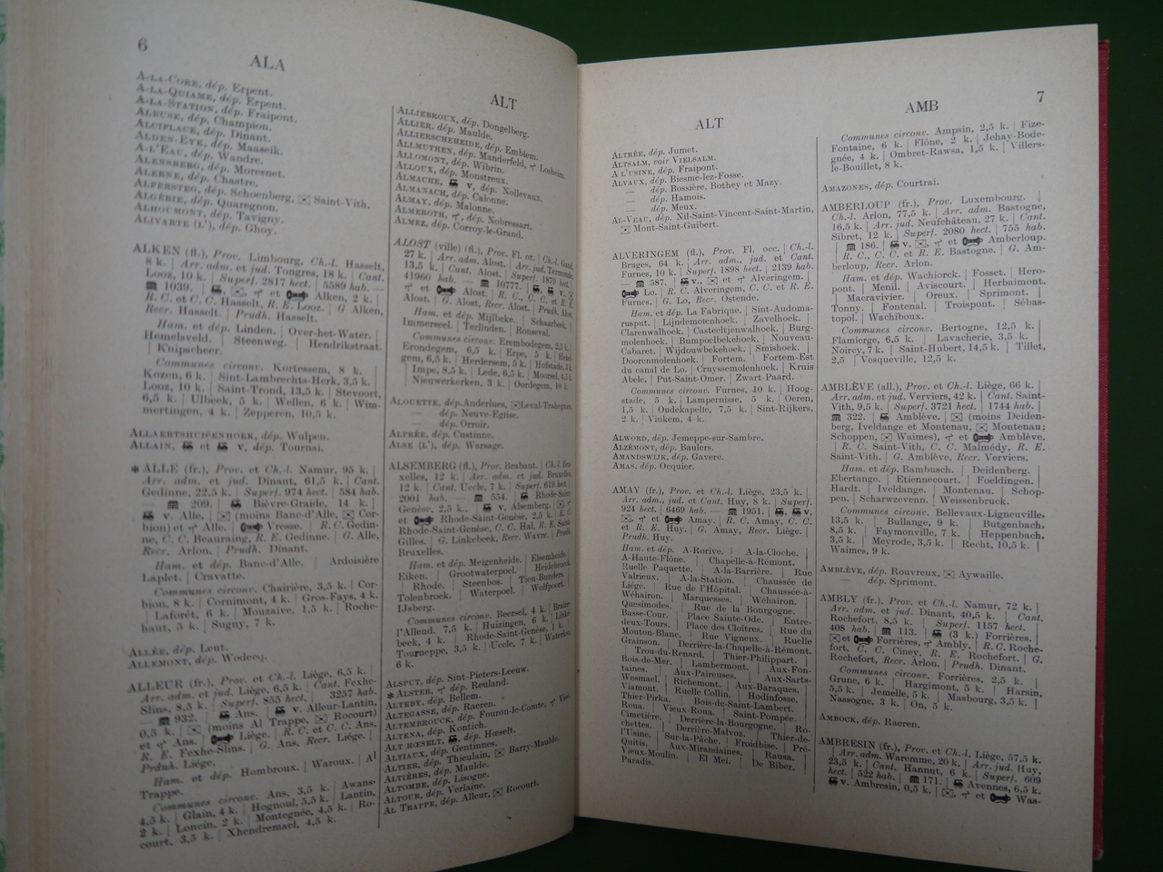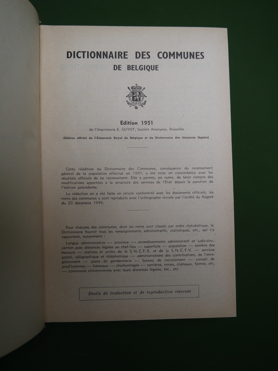 Pour chaque commune sont précisés: langue administrative, province, arrondissements administratif et judiciaire, canton, superficie, population, nombre de maisons, arrêts de la SNCFB et SNCFV, services postaux et télégraphiques, charbonnages, mines, fermes, etc etc…