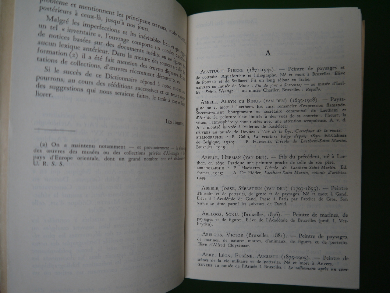 Dans la série des « Petits dictionnaires des lettres et des arts en Belgique ». Les peintres nés après 1900 ne sont pas repris.