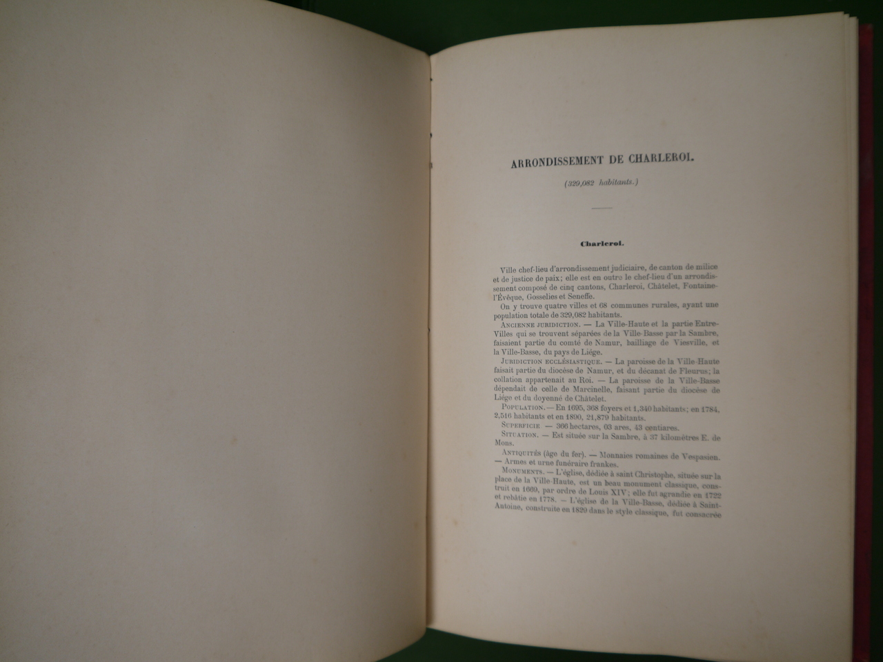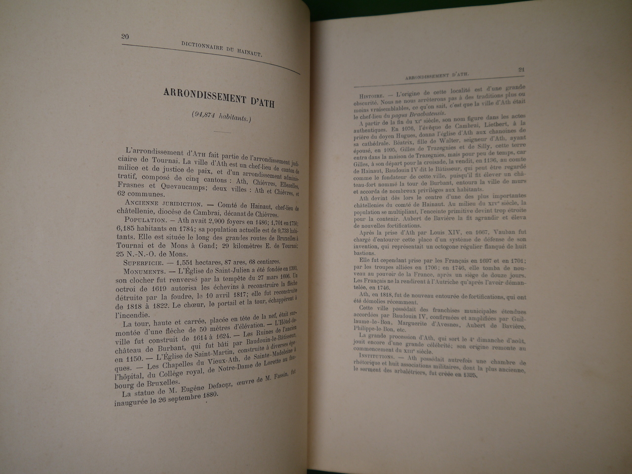 Un dictionnaire divisé en six grandes sections correspondant aux arrondissements administratifs de l’époque: Mons, Soignies, Tournai, Ath, Charleroi et Thuin.