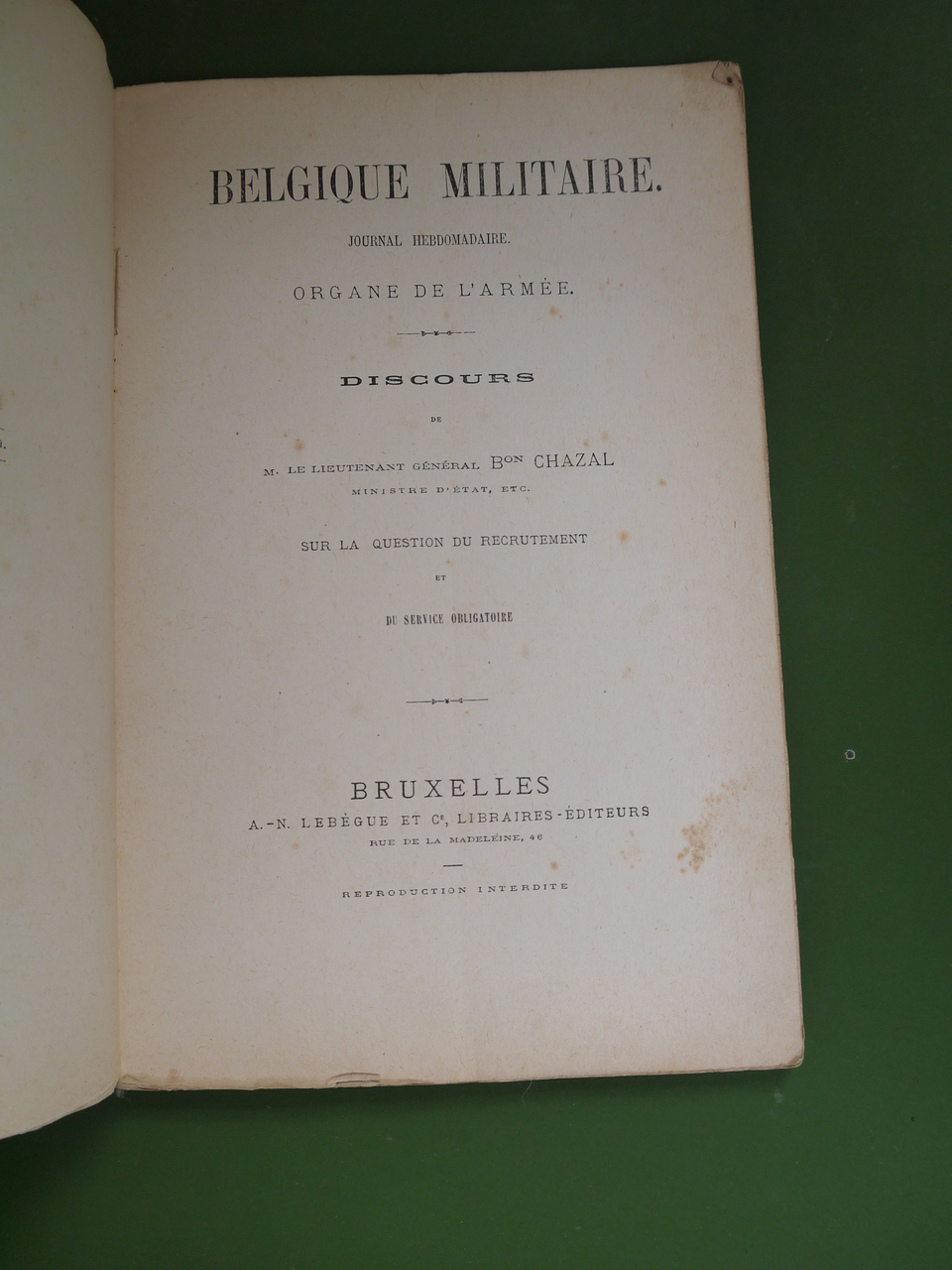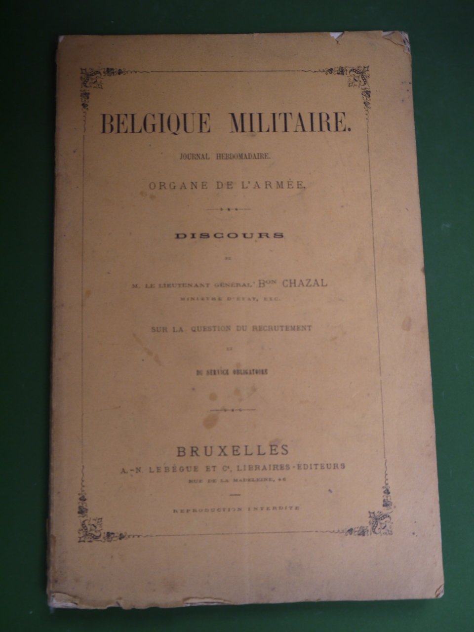 Discours de M. le lieutenant général Baron Chazal sur la question du recrutement et du service obligatoire, Baron Chazal, Lebègue, non-daté