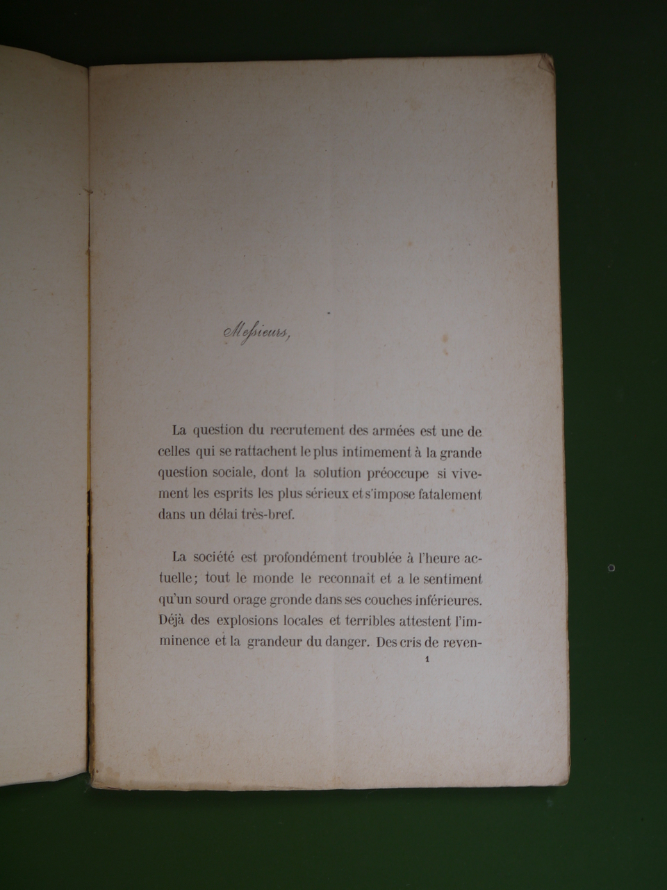 Soyez le premier à laisser votre avis sur “Discours de M. le lieutenant général Baron Chazal sur la question du recrutement et du service obligatoire, Baron Chazal, Lebègue, non-daté”