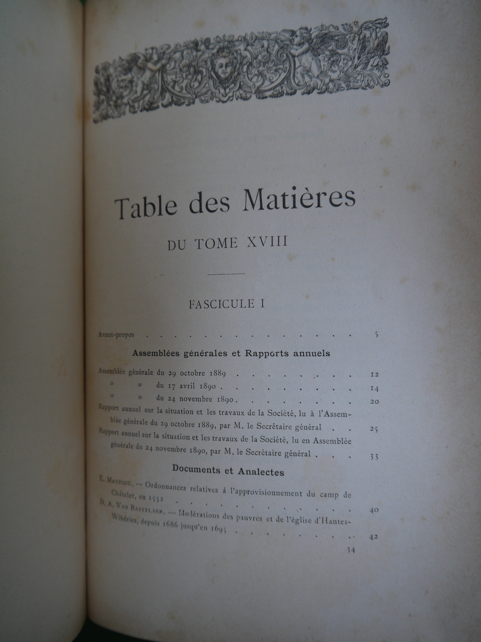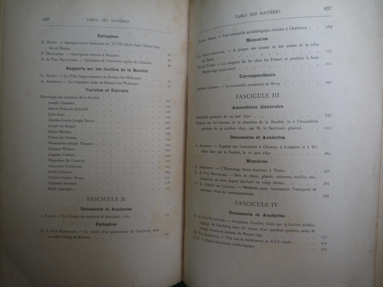 Le tome XVIII, avec notamment une villa romaine et un cimetière franc à Boussu-lez-Walcourt, les minières de Morialmé, les sceaux et armes de la ville de Thuin…