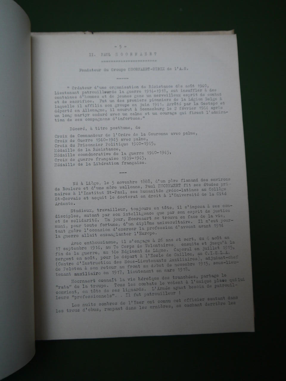 « Groupe Hoornaert-Dirix de l’armée secrète 1940-1945 ». 131 pages dactylographiées.