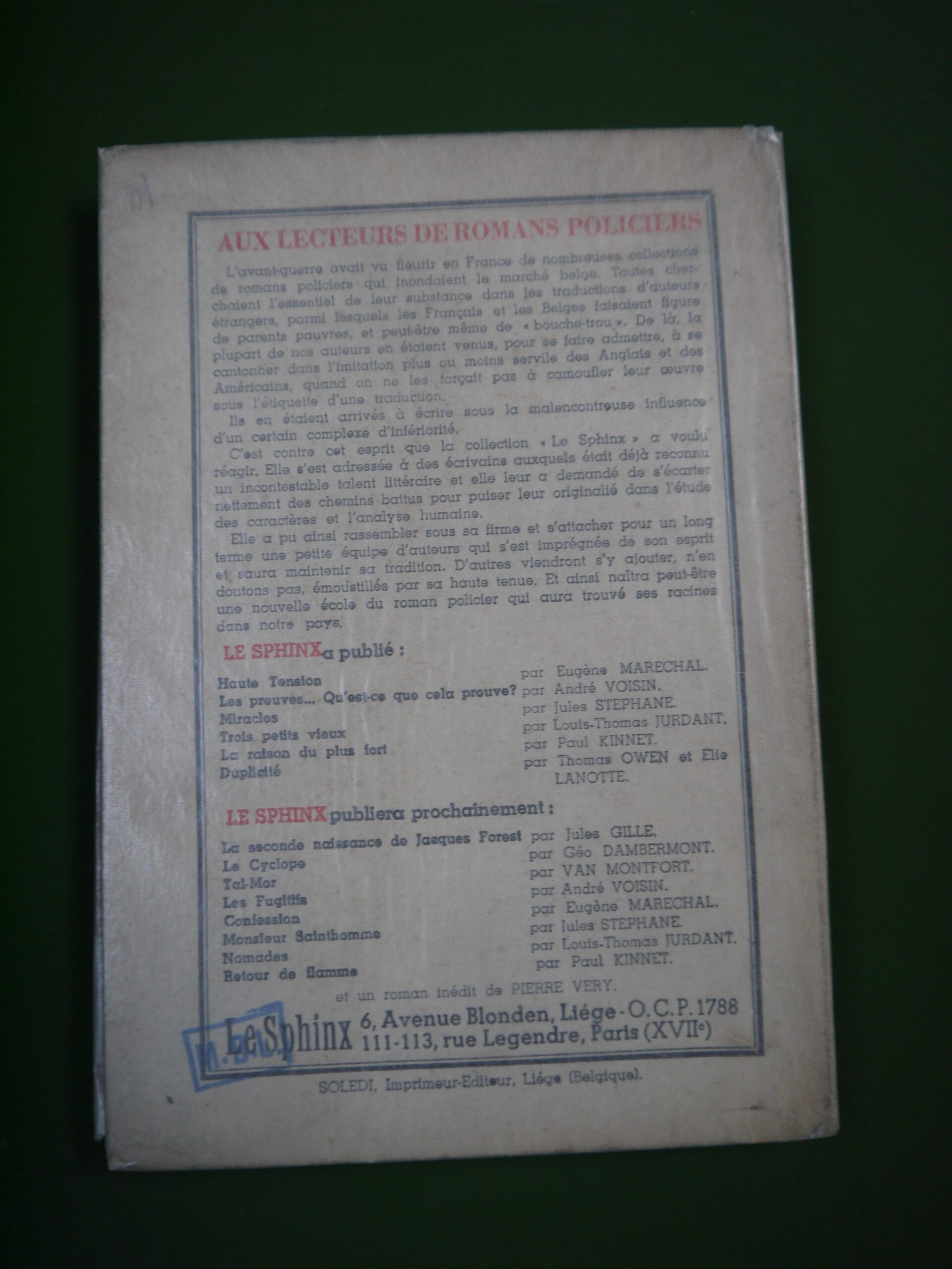 Duplicité, Thomas Owen & Elie Lanotte, le Sphinx, 1942