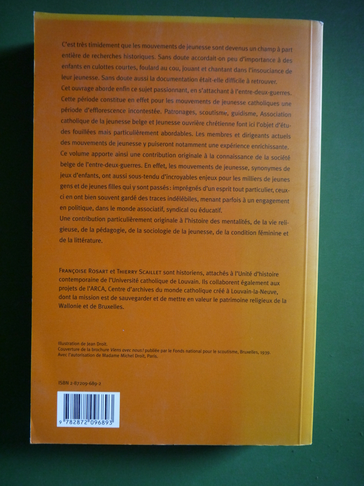 Entre jeux et enjeux, mouvements de jeunesse catholiques en Belgique, Françoise Rosart et Thierry Scaillet, Bruylant, 2002