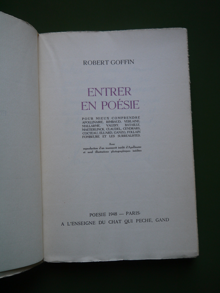 Entrer en poésie, Robert Goffin, A l’enseigne du chat qui pêche, 1948