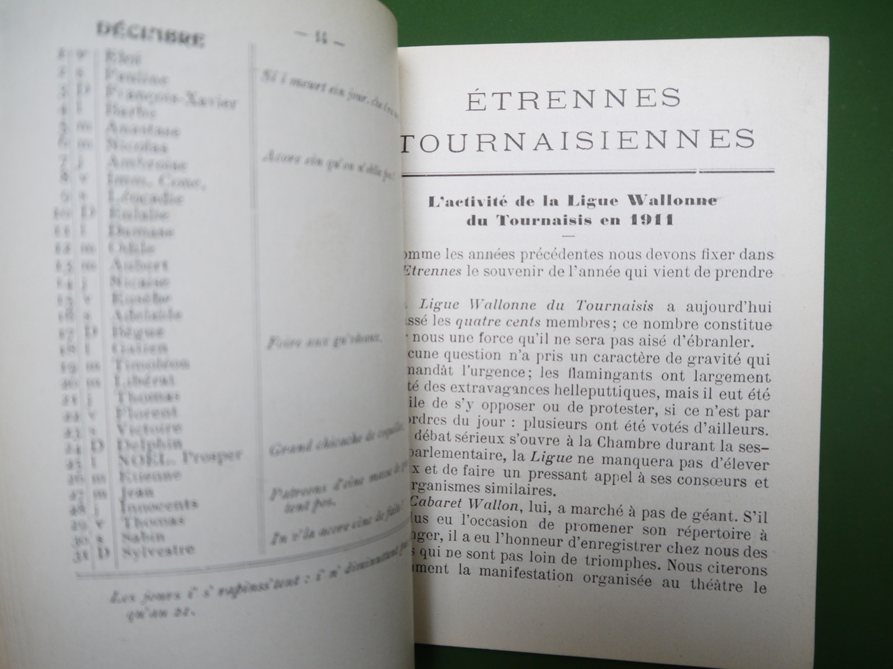 « Publiées par la Ligue wallonne du tournaisis », avec pour secrétaire Walther Ravez. Parmi les chansons: « Les fiers-cus » de L. Béghin.