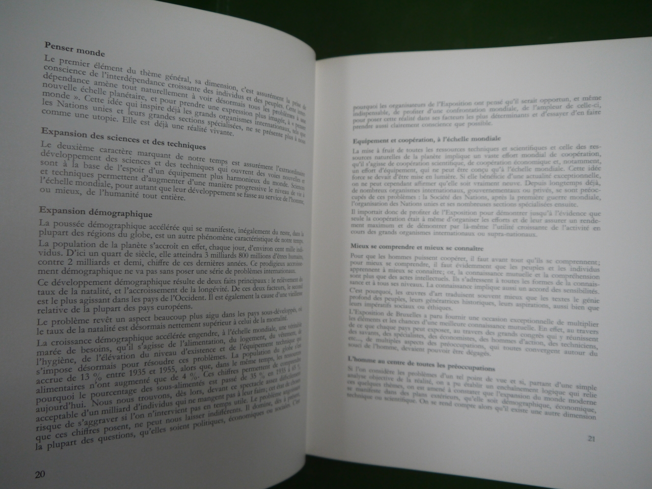 Le bilan de l’Expo 58 en plus de 300 pages. Points spécialement intéressants: la publicité et les affiches, le logement des visiteurs, la liste des personnalités ayant parcouru l’Expo…