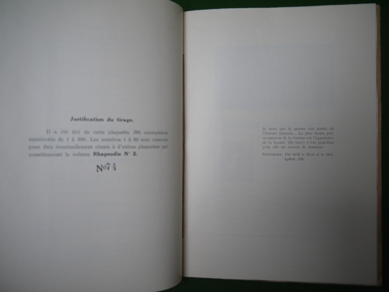 Texte d’une conférence plutôt cocasse donnée en 1937 aux Beaux-arts de Bruxelles, dans le cadre de la « Semaine de la beauté »… 350 exemlplaires.