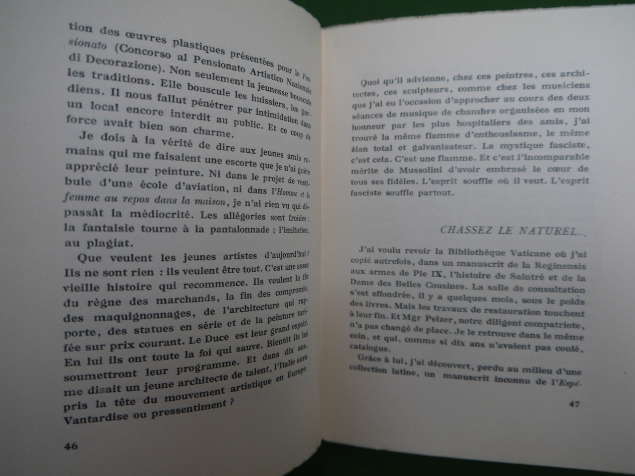 Desonay est en admiration devant Mussolini et les italiens, avec leur « sens de la tenue, du chic, de la grandeur ».