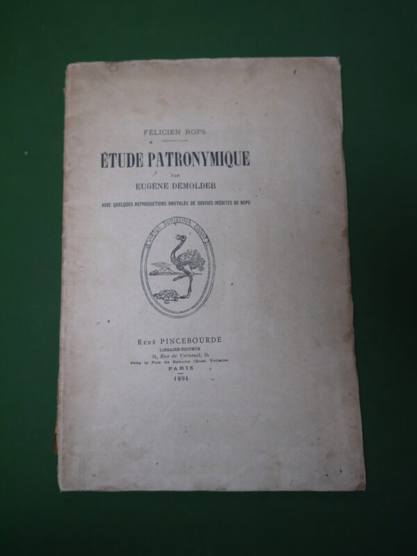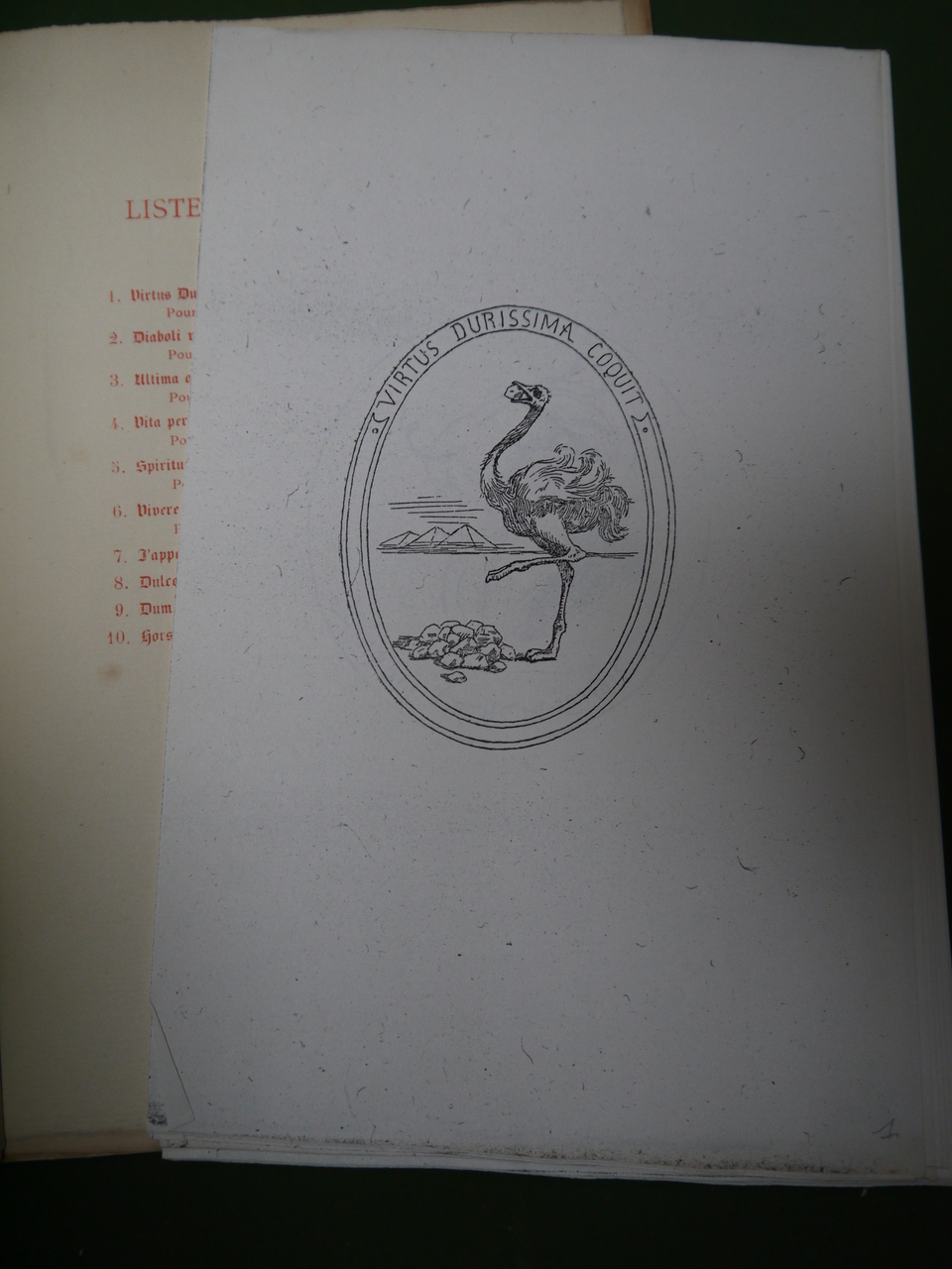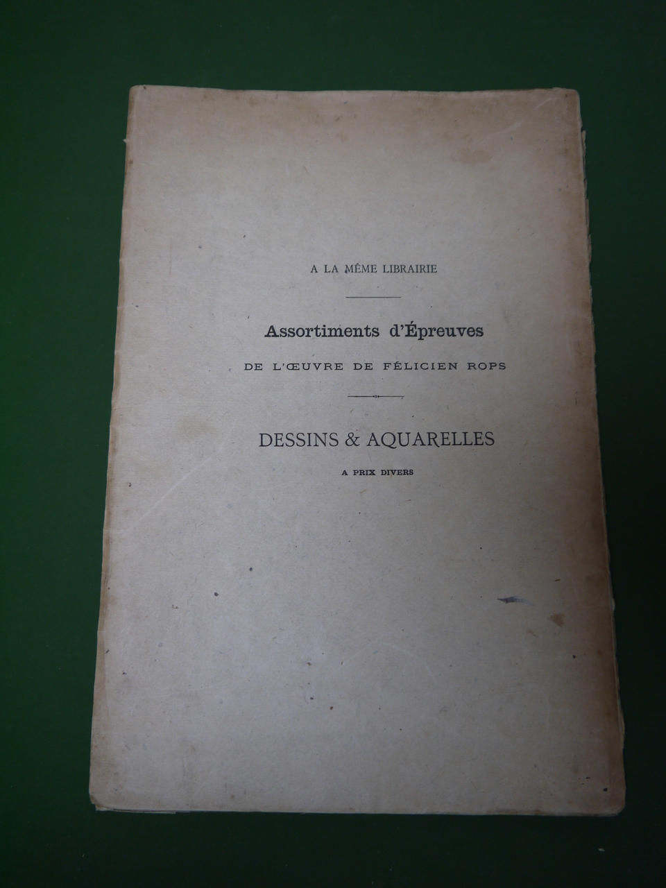 « Avec quelques reproductions brutales de devises inédites de Rops », mais seules 4 reproductions originales (sur les 10 annoncées) sont présentes. (Des photocopies des 10 devises sont jointes également). Etat général moyen. Eugène Demolder était le beau-fils de Rops.