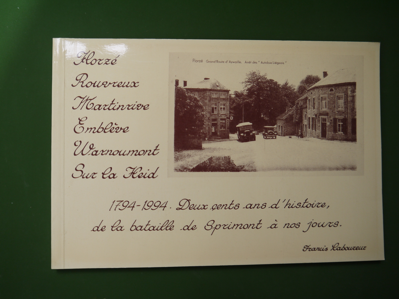 Titre complet: « 1794-1994, deux cent ans d’histoire, de la bataille de Sprimont à nos jours ». Photos anciennes de ces villages du côté d’Aywaille.
