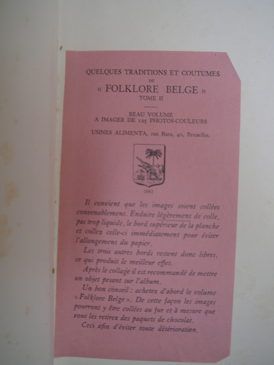 Les deux tomes sont bien complets et dans leur cartonnage. Magnifique source d’informations sur le folklore régional, tant en Flandres qu’en Wallonie.