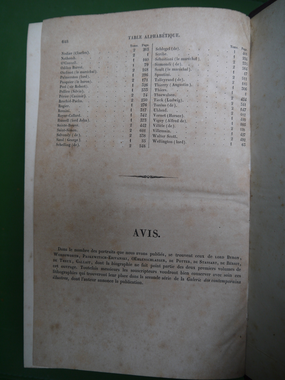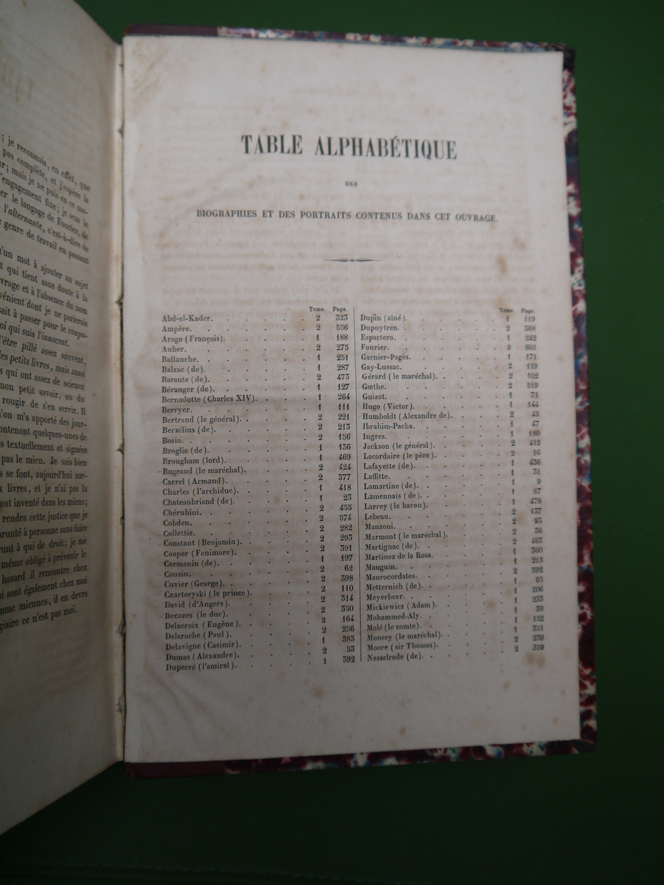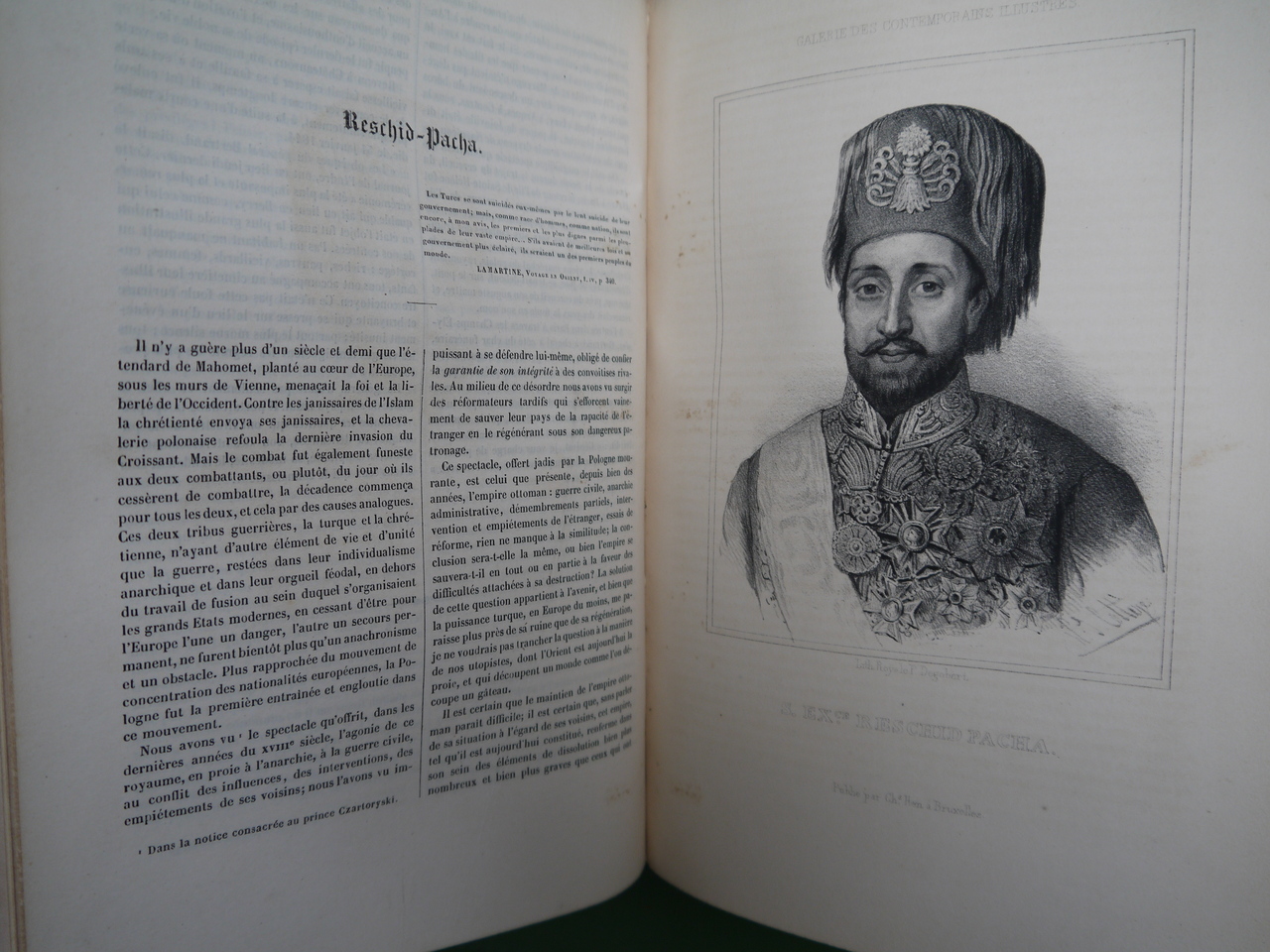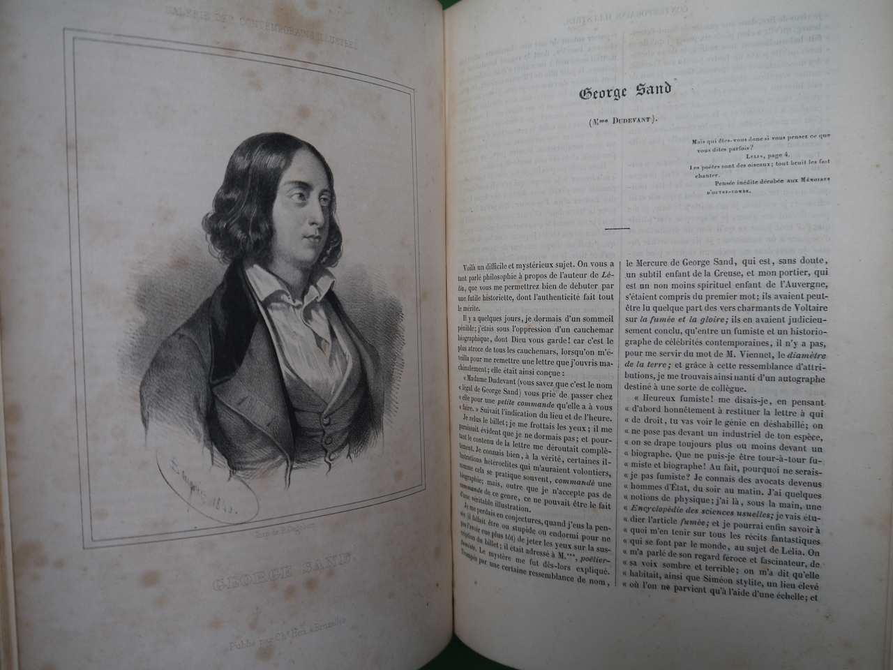 « Avec une lettre-préface de M. de Châteaubriand, ornée de magnifiques portraits dessinés par M. Baugniet. » L’ « homme de rien » s’appellait en réalité Louis de Loménie et était français, comme la quasi-totalité des contemporains illustres cités – exceptions belges: Nothomb et Rogier. Nombreuses gravures hors-texte. Edition belge d’un titre publié à Paris.