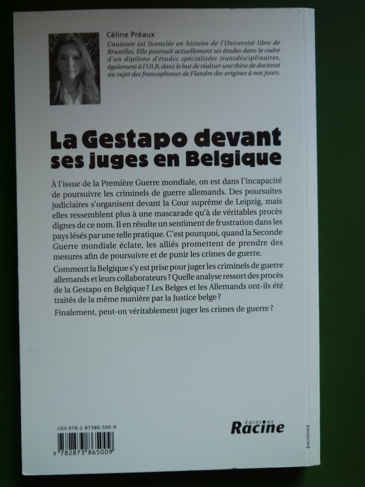 L’auteur se concentre sur la Gestapo dinantaise, notamment pour des raisons historiques (la résistance locale a été particulièrement virulente, ayant à coeur de venger les massacres civils de la Grande guerre). L’exemplaire proposé est plastifié.