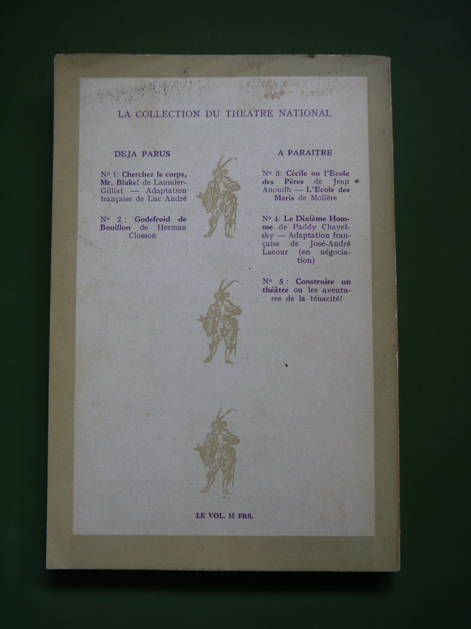 Texte d’une pièce jouée au Théâtre national, cette édition étant uniquement destinée au public de cette institution… Le texte obtint le Prix triennal du Théâtre en 1935.
