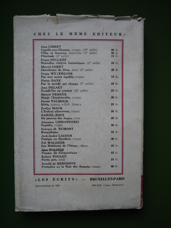 Un auteur aussi prolifique qu’éclectique, né à Braine-le Comte. Ouvrage paru en 1943: la qualité du papier est typique de l’époque.