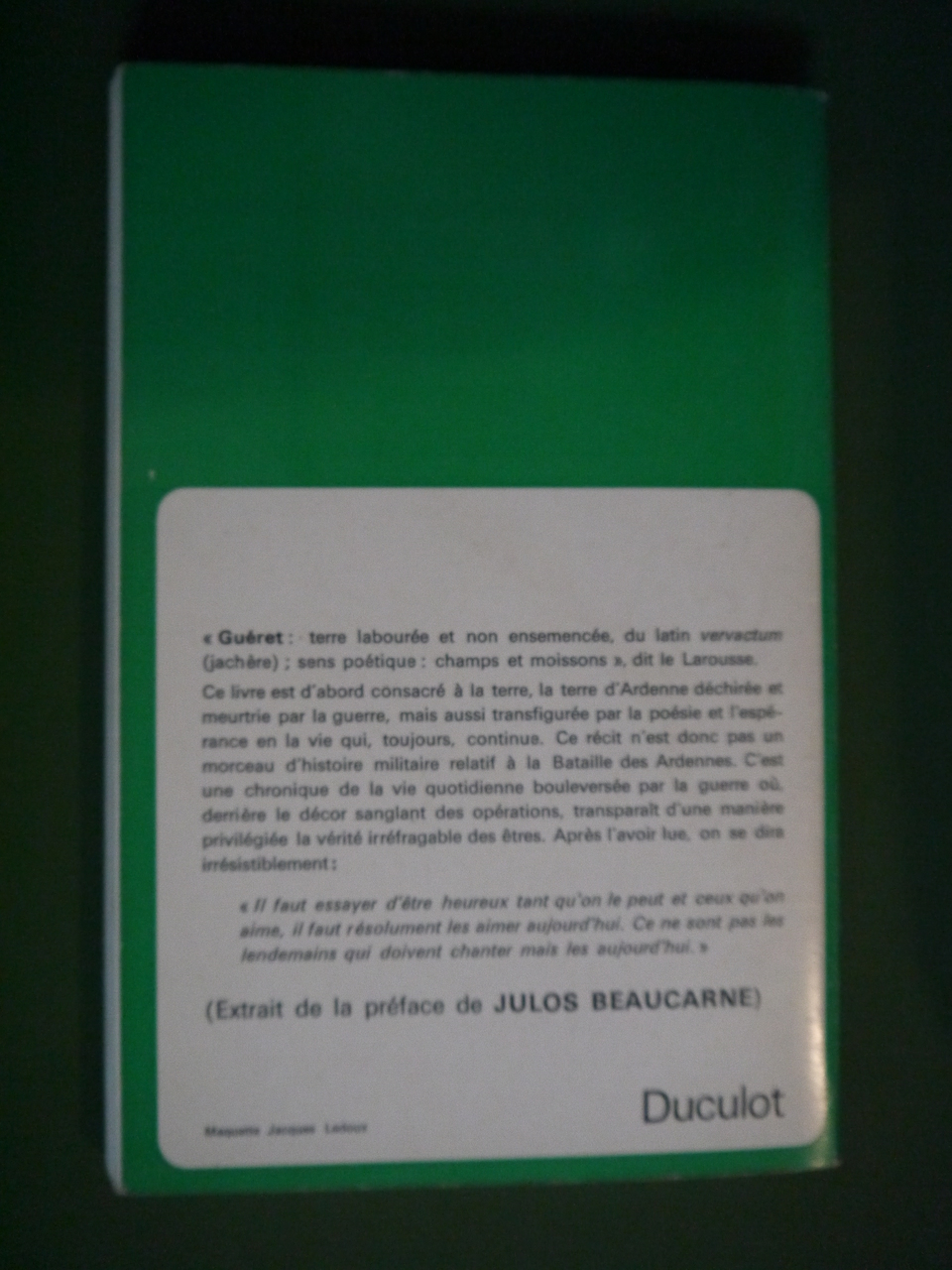 Evocations de la campagne bastognarde et de ses paysages mutilés de l’après guerre. Préface de Julos Beaucarne.