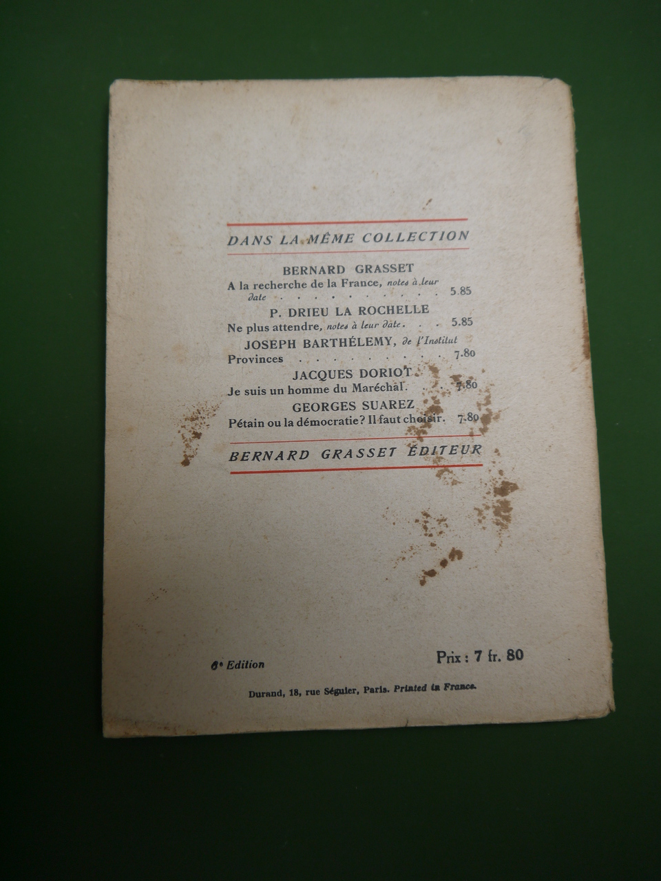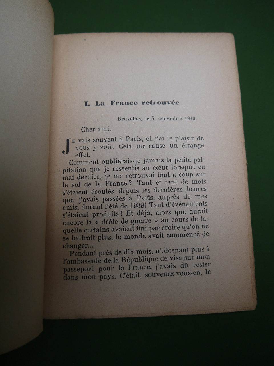 « Lettres d’un belge à un ami français ». 77 pages dédiées à Bernard Grasset, un éditeur au rôle très trouble pendant les années de guerre… Etat moyen.