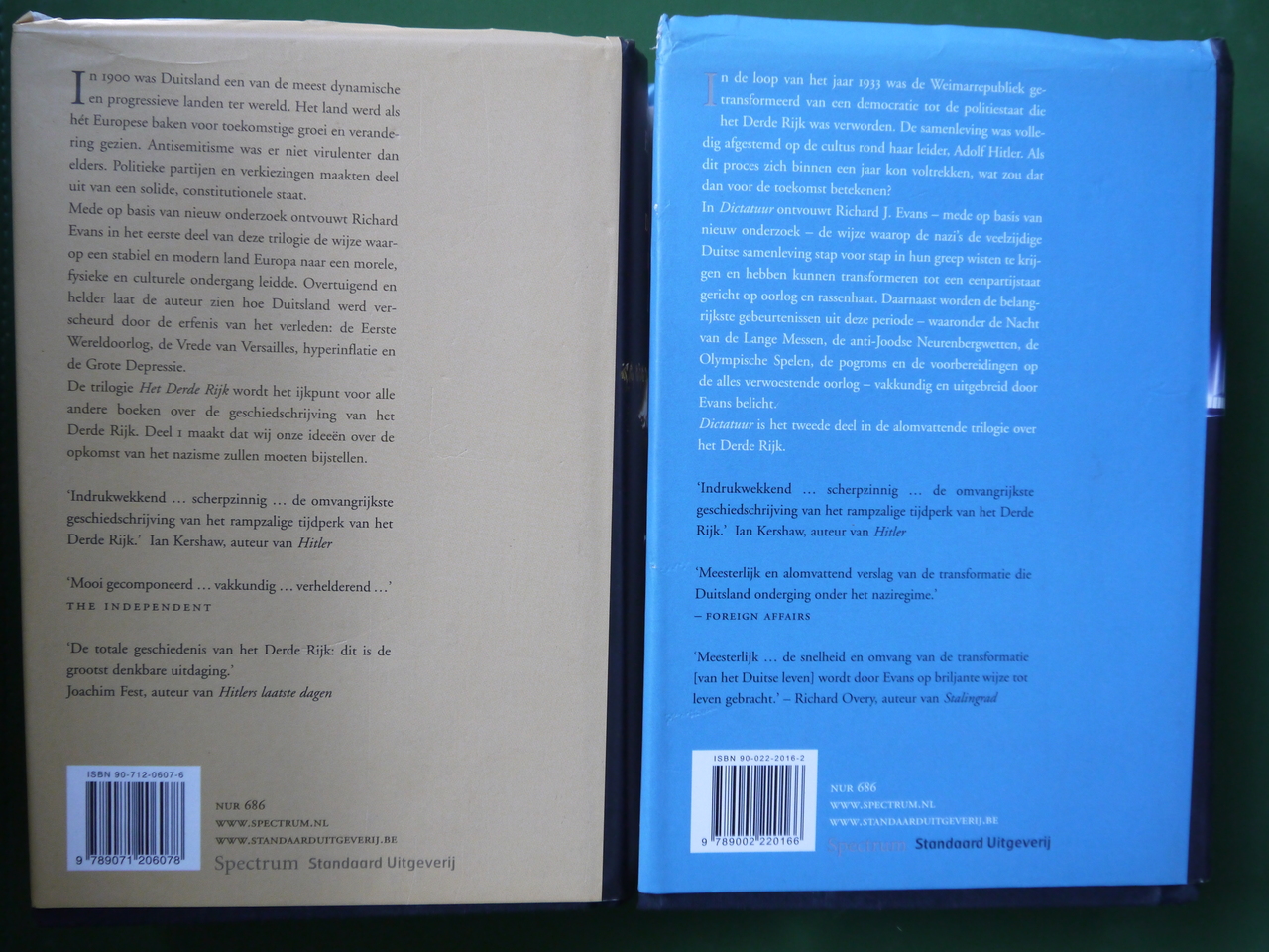 Les deux premiers volumes de cette colossale étude du Troisième reich, « Opkomst » et « Dictatuur » (manque le volume 3 intitulé « Oorlog ») par un historien anglais spécialiste de l’Allemagne.