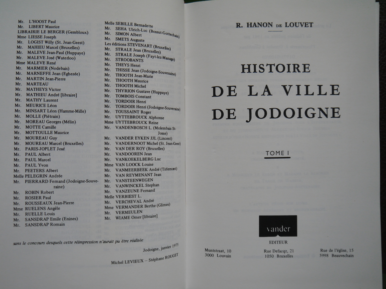 Histoire de la ville de Jodoigne (2 tomes), R. Hanon de Louvet, Vander, 1975