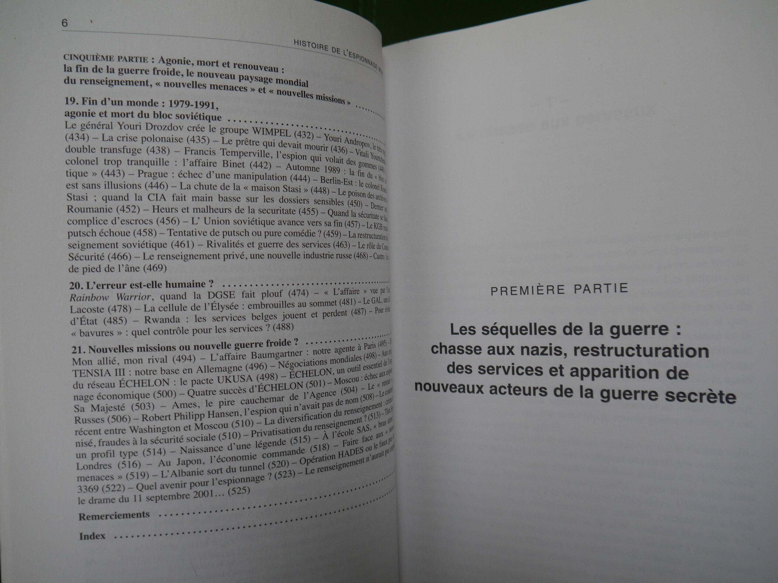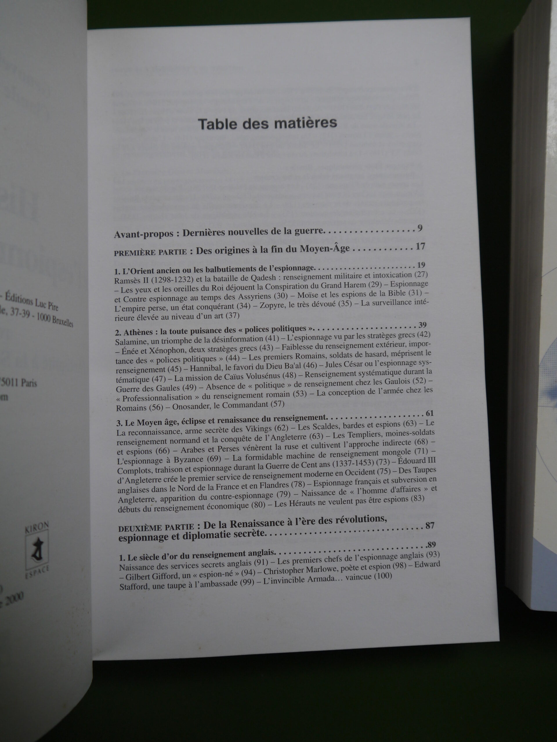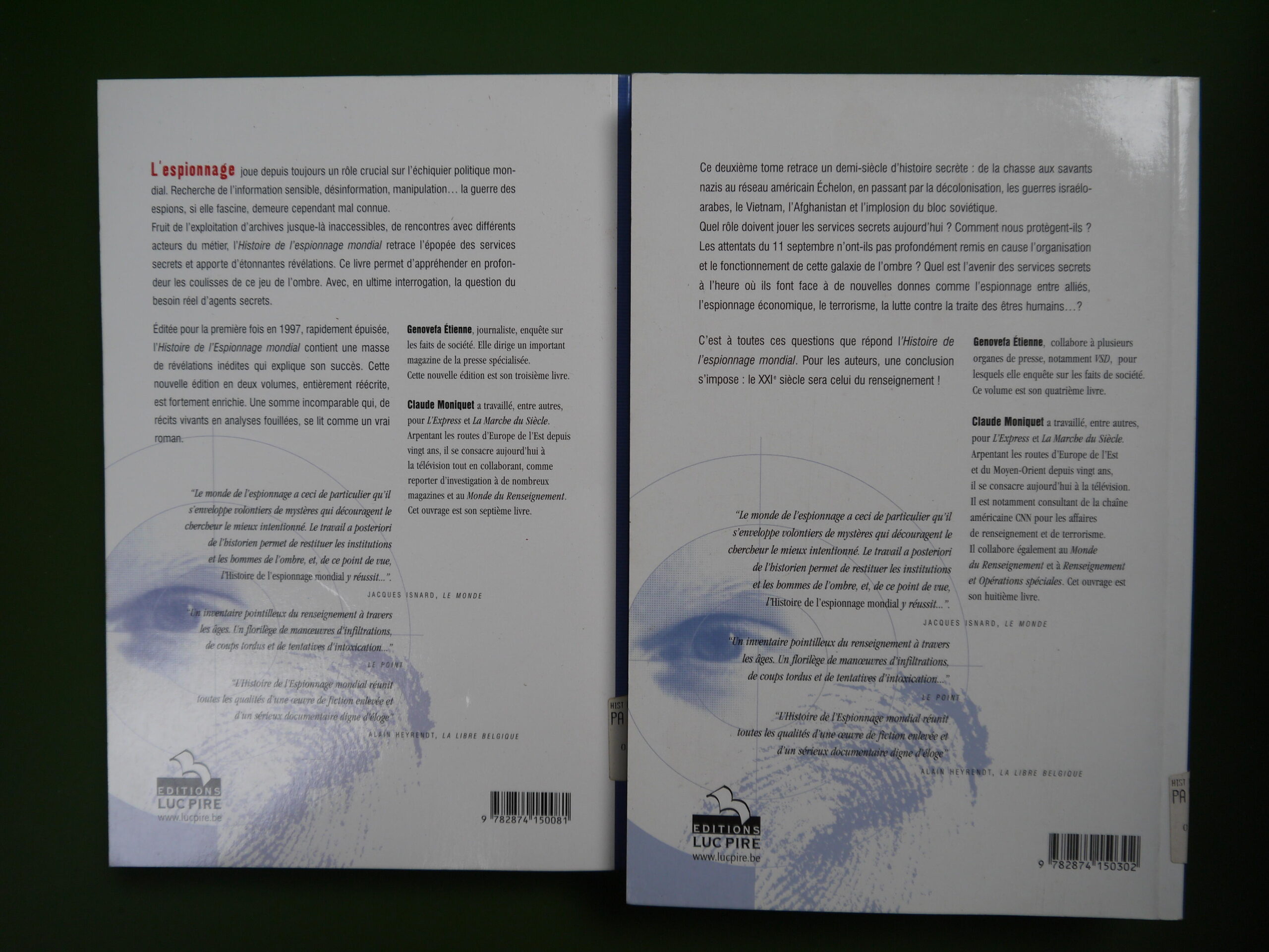 Tome 1: « Les services secrets de l’Antiquité à la seconde guerre mondiale ». Tome 2: « De la guerre froide à la guerre antiterroriste ».