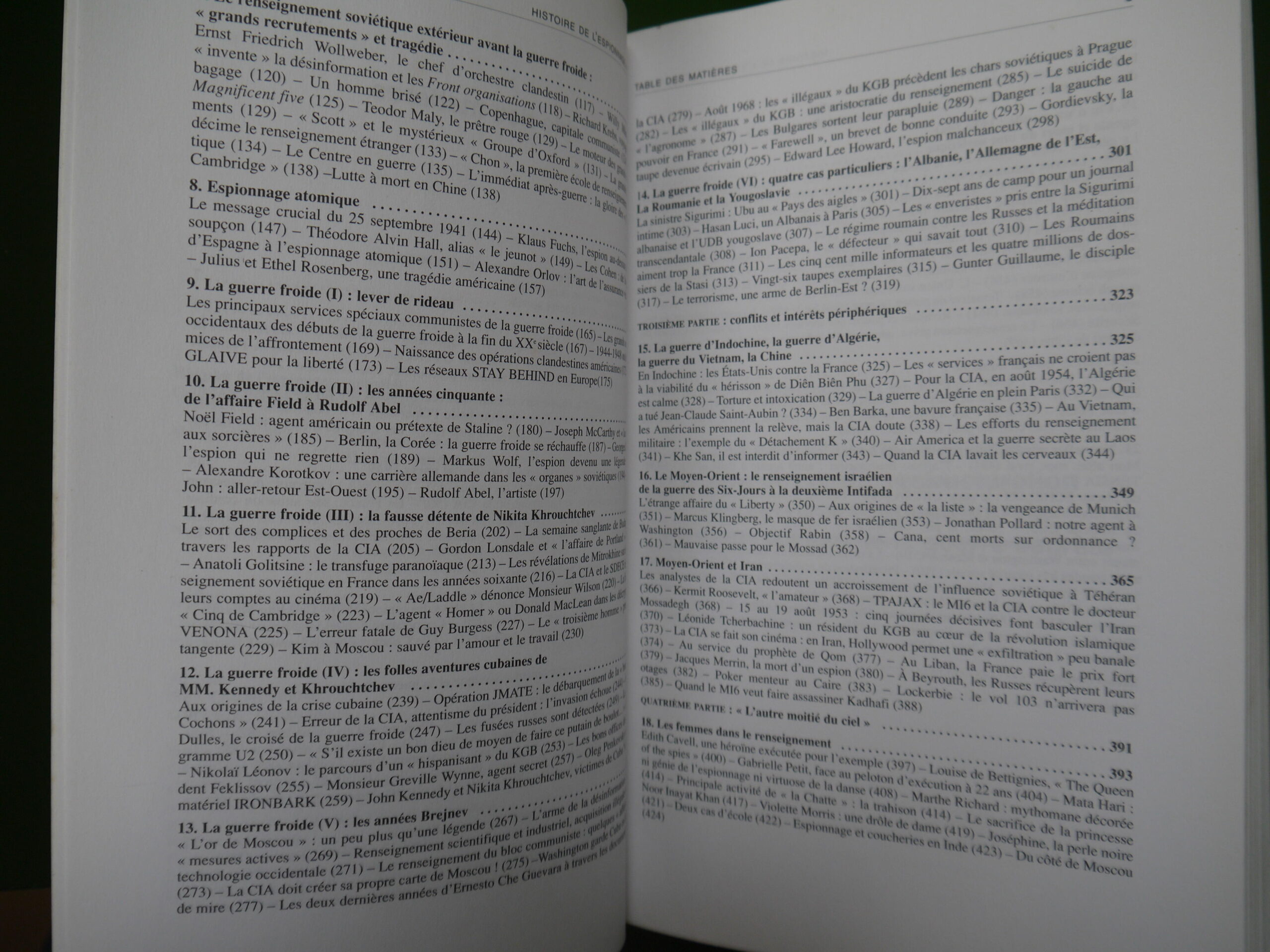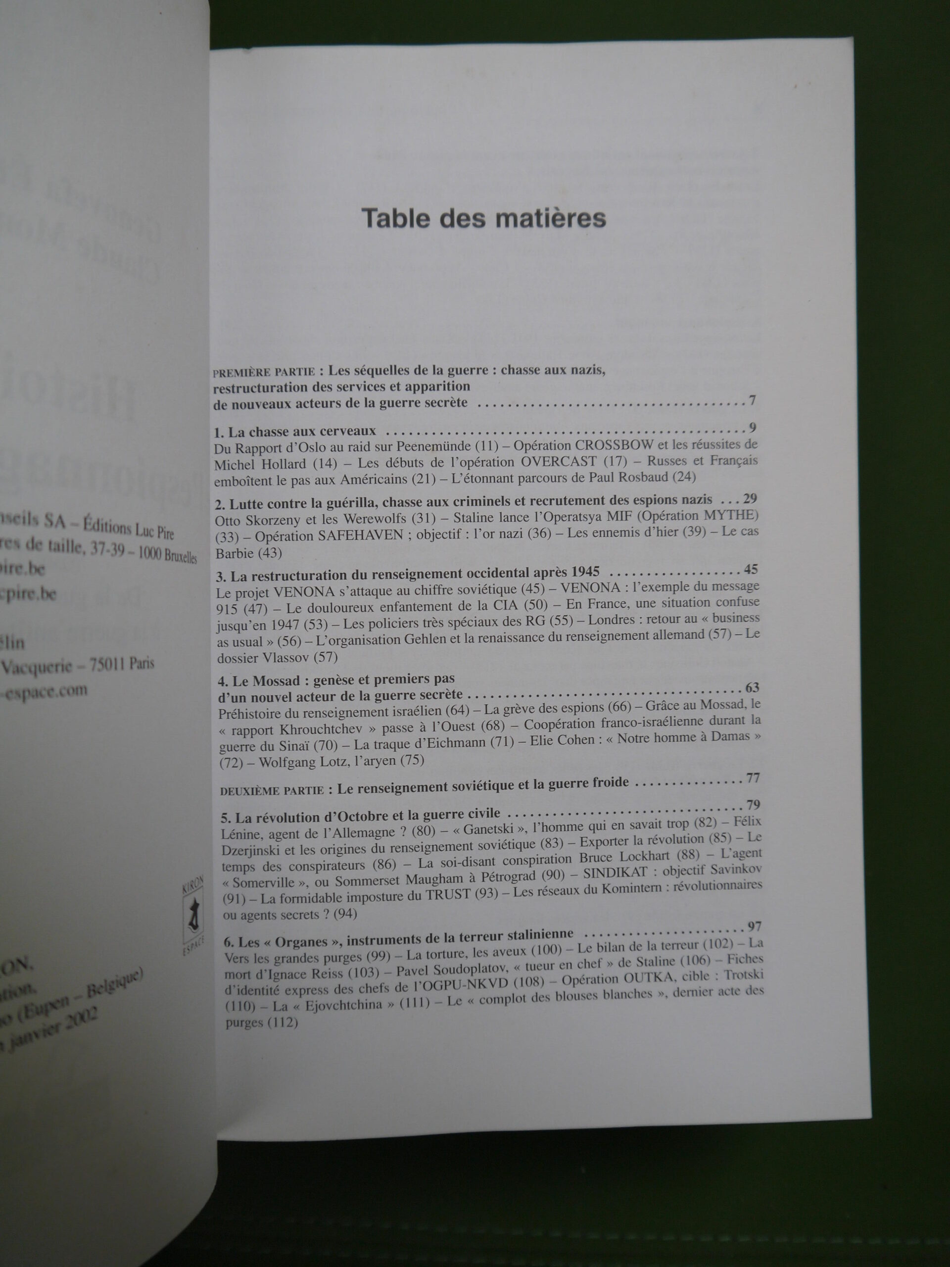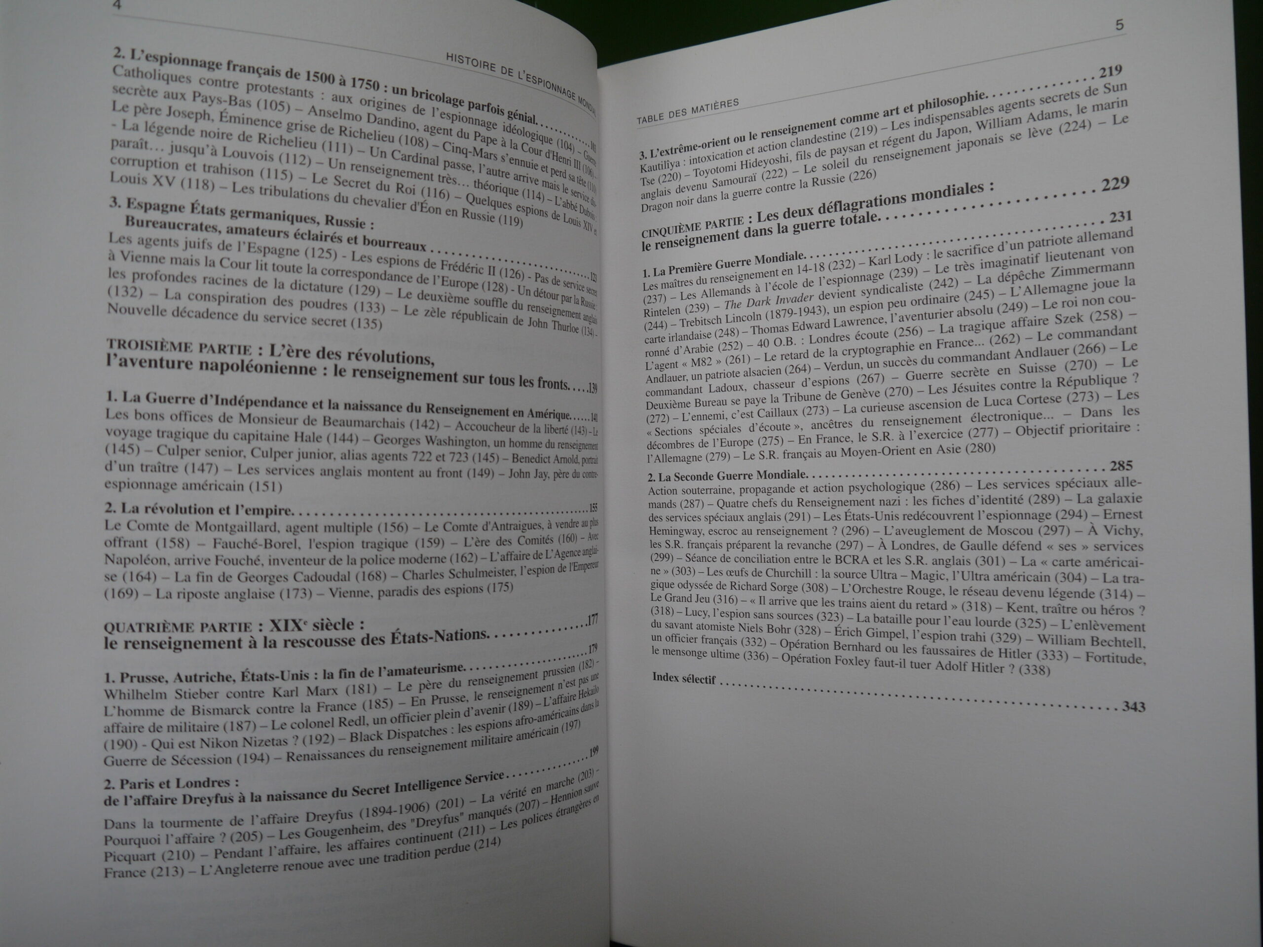 Tome 1: « Les services secrets de l’Antiquité à la seconde guerre mondiale ». Tome 2: « De la guerre froide à la guerre antiterroriste ».