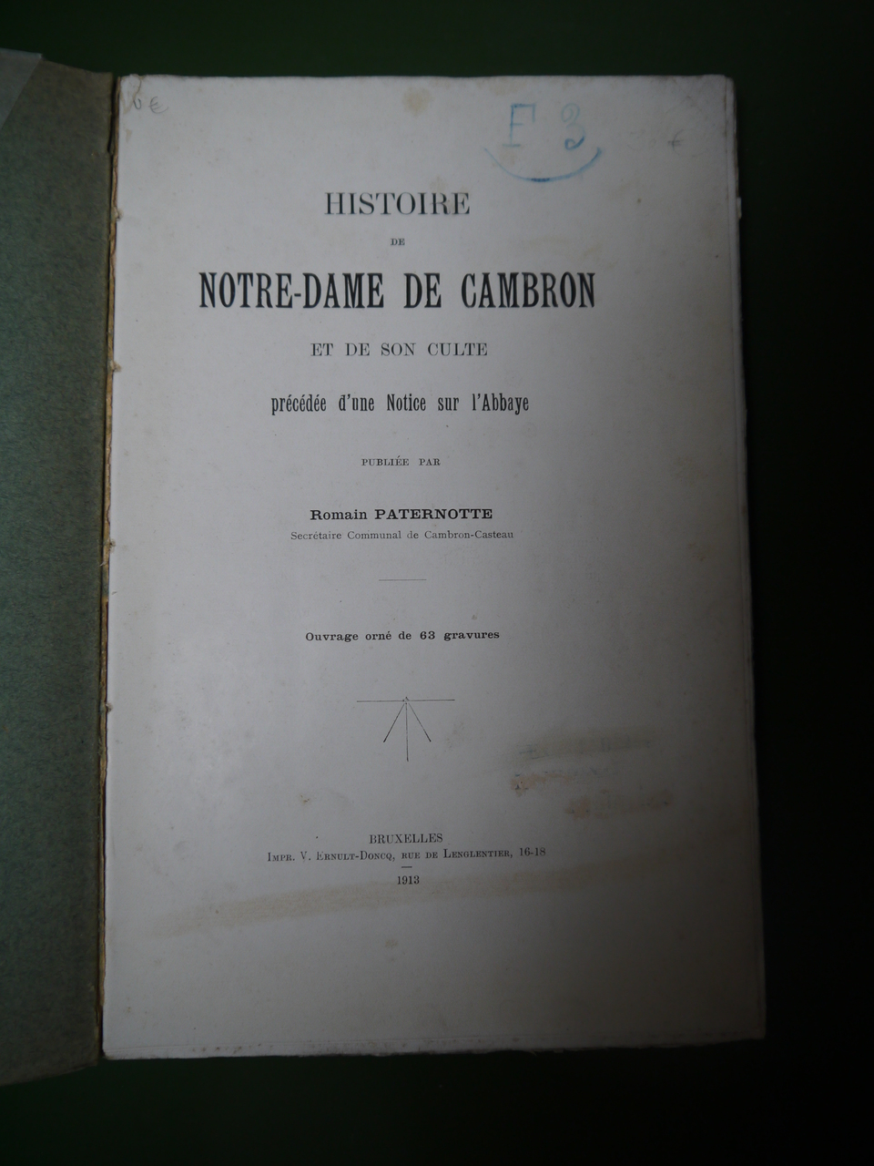 L’auteur était secrétaire communal de Cambron-Casteau. « Ouvrage orné de 63 gravures ».