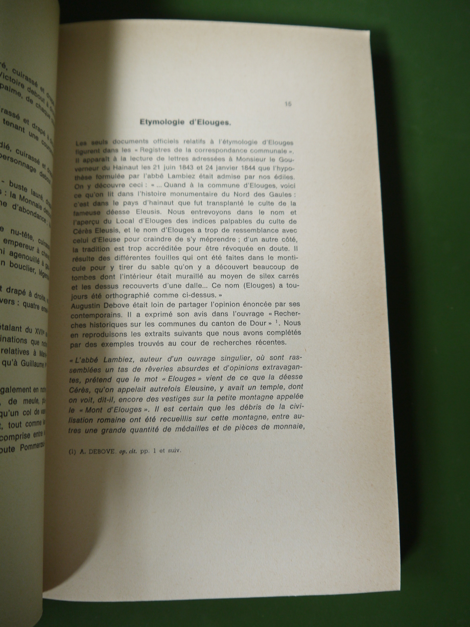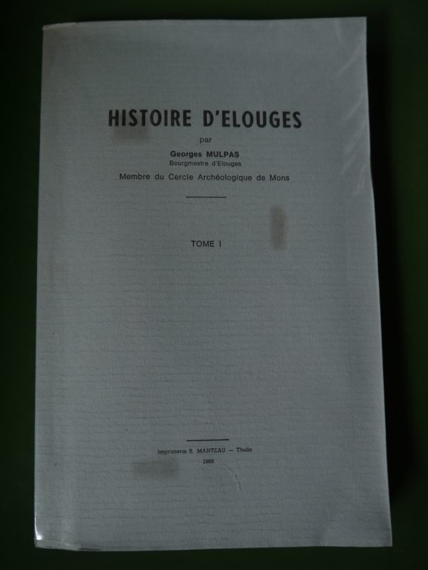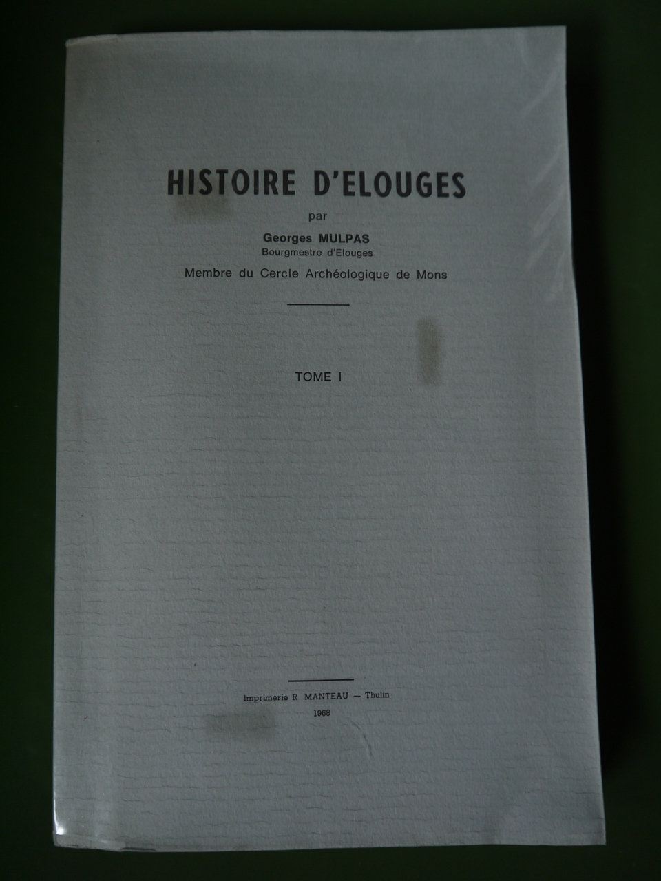 Elouges se trouve à l’ouest de Mons, juste à côté de Dour. Georges Mulpas fut un saxophoniste réputé de la fanfare « Les Ouvriers Réunis ». Il mena une carrière politique locale, étant notamment Bourgmestre d’Élouges durant dix ans. Mais il doit sa notoriété à la création, en 1968, d’un musée qui présente la vie locale : objets de la vie rurale, faïences et costumes féminins d’autrefois. Tome 1 seul.