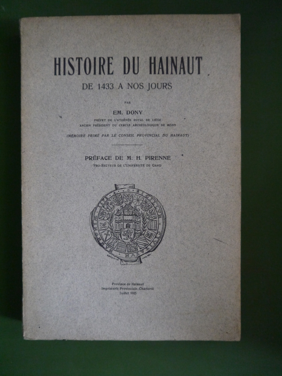 Histoire du Hainaut de 1433 à nos jours, Em. Dony, Province de Hainaut, 1925