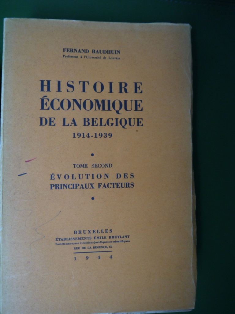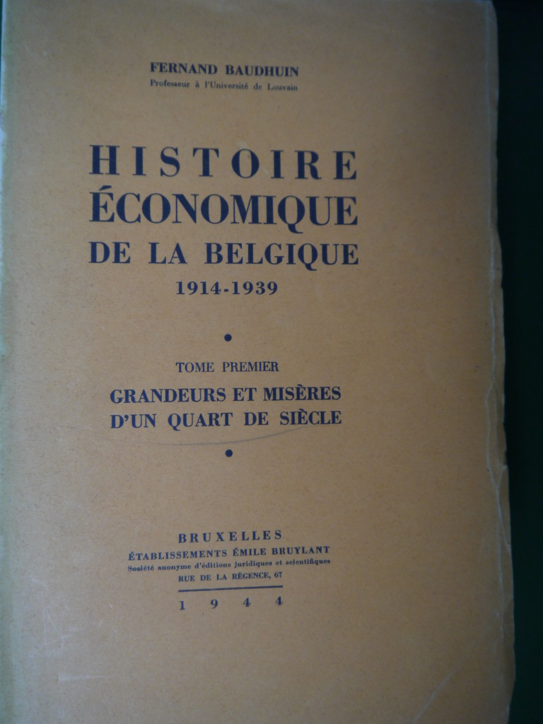 Histoire économique de la Belgique 1914-1939 (2 tomes), Fernand Baudhuin, Bruylant, 1944