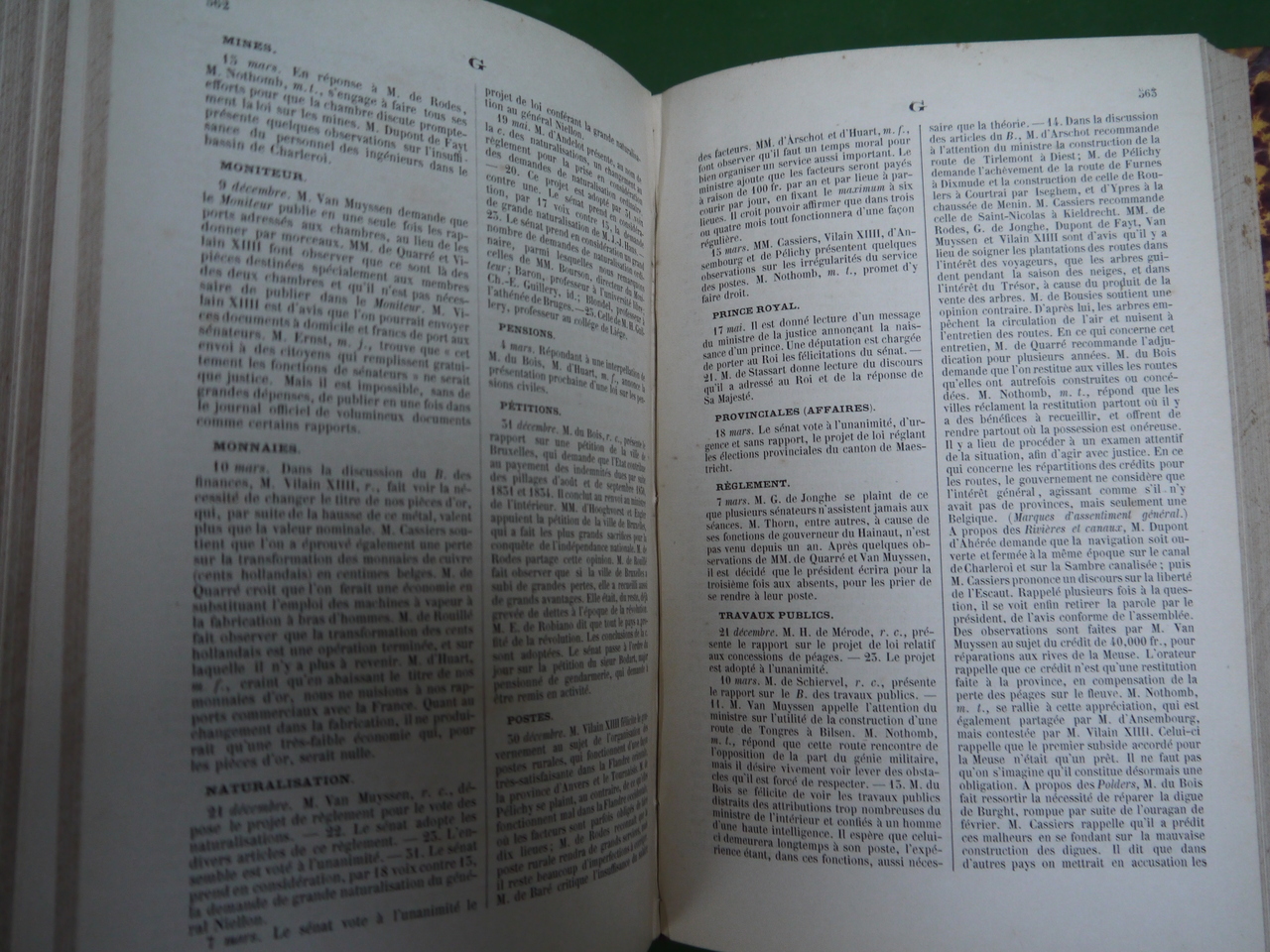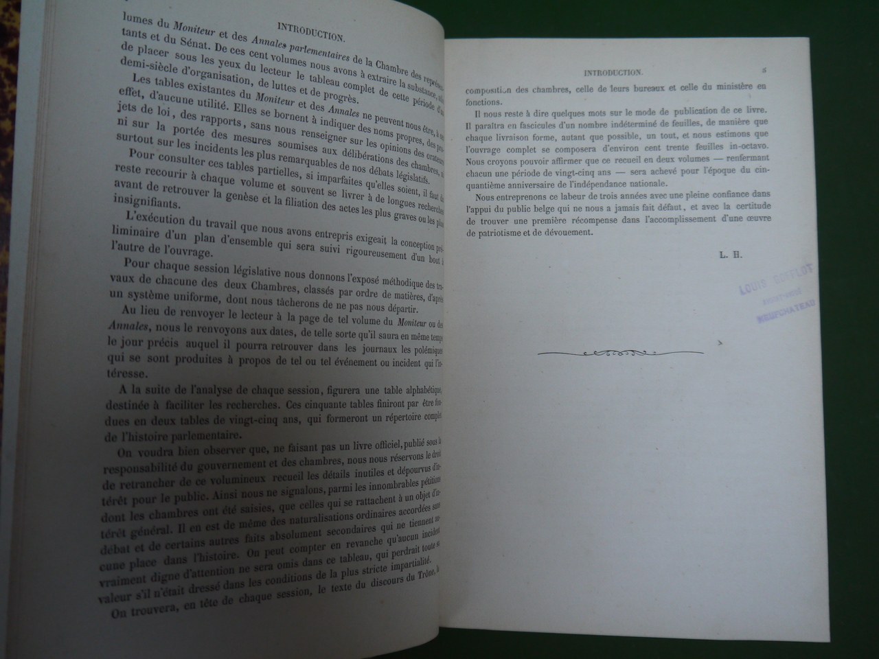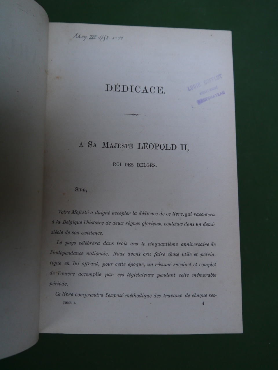 Cinq volumes (un par décennie) dédiés à sa Majesté Léopold II roi des belges. Un aperçu très précis des débats menés dans les deux Chambres. Une table des matières abordées et des différents orateurs est présente en fin du tome 5.