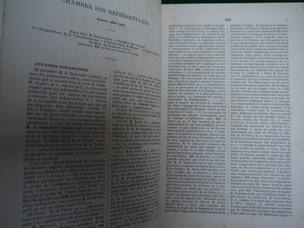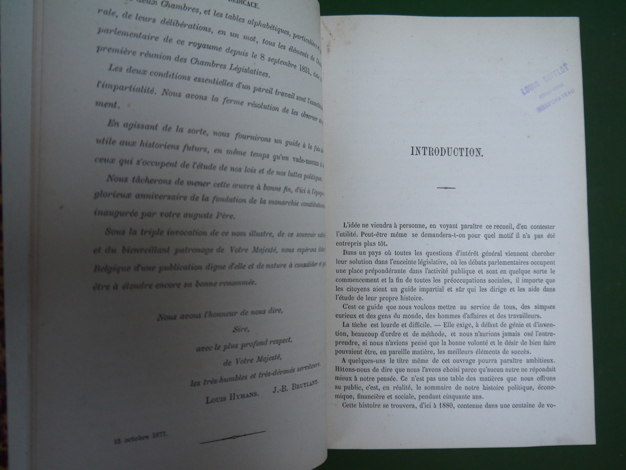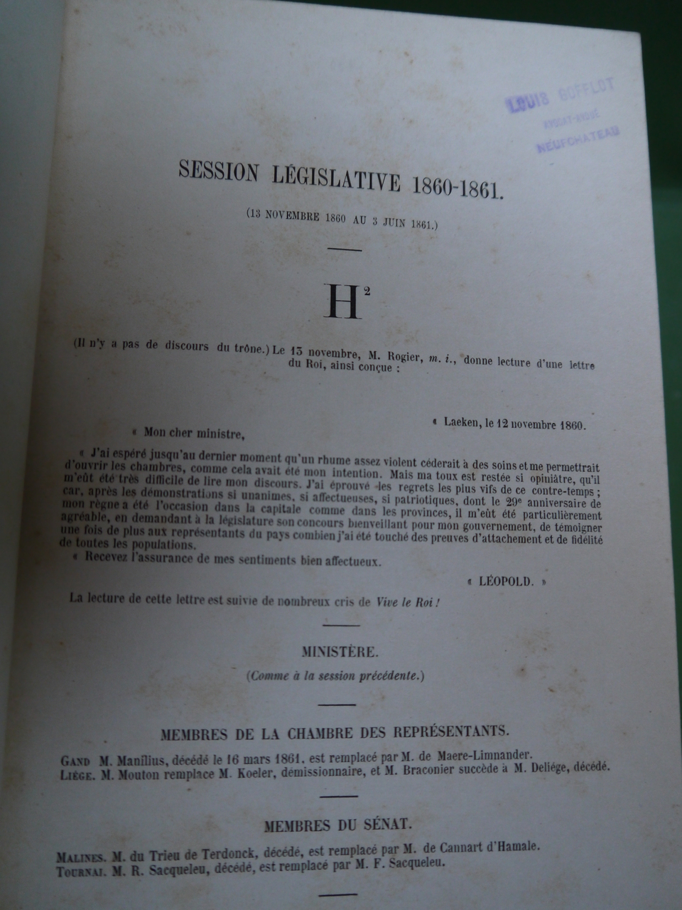 Cinq volumes (un par décennie) dédiés à sa Majesté Léopold II roi des belges. Un aperçu très précis des débats menés dans les deux Chambres. Une table des matières abordées et des différents orateurs est présente en fin du tome 5.