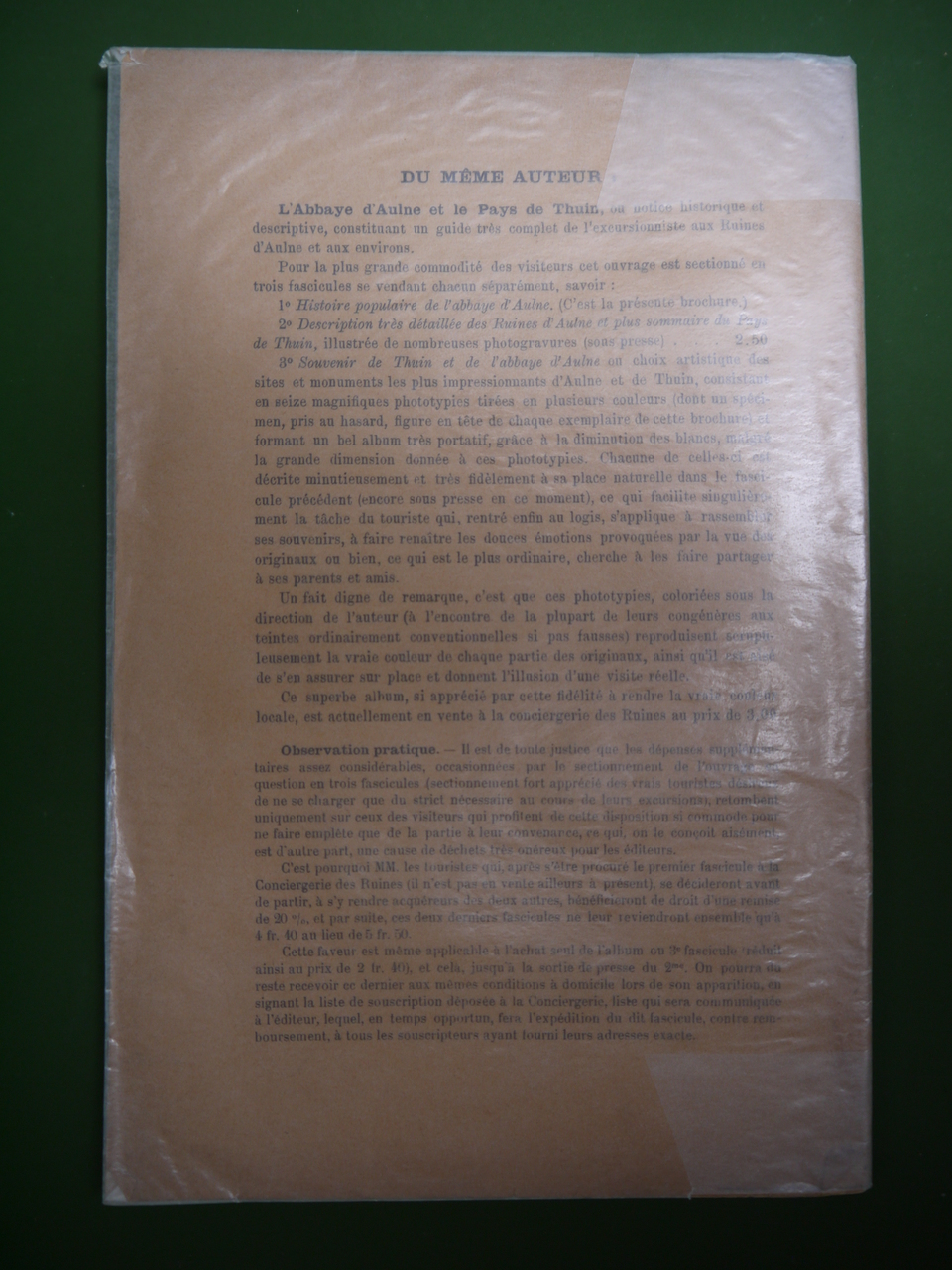« Ou simple notice historique sur les faits les plus intéressants de ses annales et la vie intime de ses anciens moines ». L’éditeur L. Vanderpoorten était gantois.