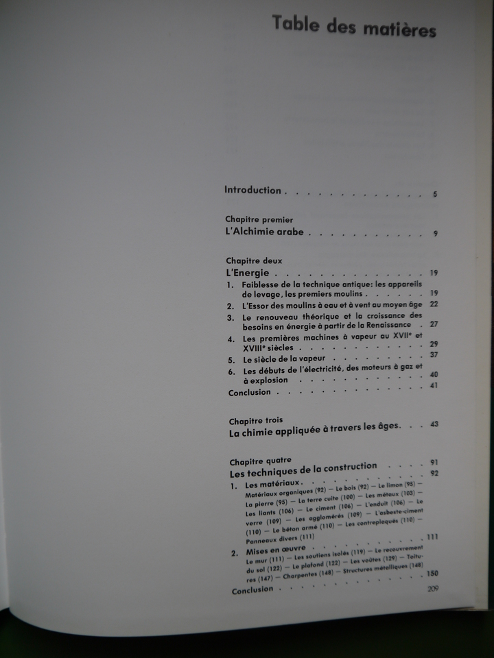 L’alchimie arabe, l’énergie, la chimie, les techniques de construction, le textile et les voies de communication sont abordées successivement.