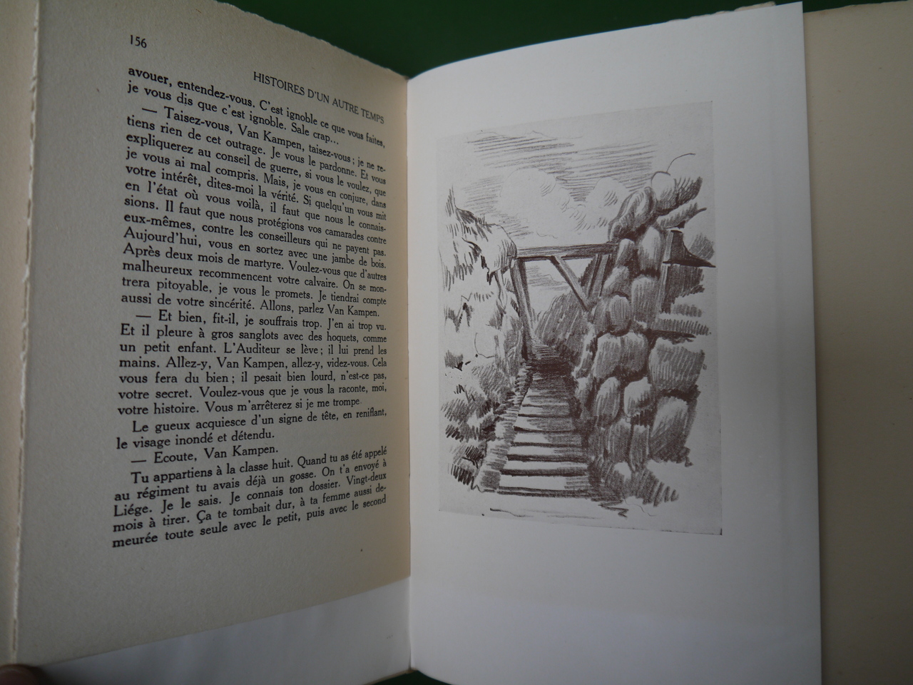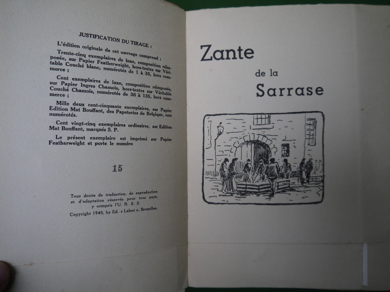 Illustrations de Henry Bodart. Un des 35 exemplaires hors-commerce sur Featherweight. 21 récits dont le plus important est Zante l’Aimable de La Sarrase, qui retrace la vie laborieuse d’un verrier namurois et de son épouse dans les quartiers populaires de Namur. Contes de guerre, souvenirs personnels, etc.