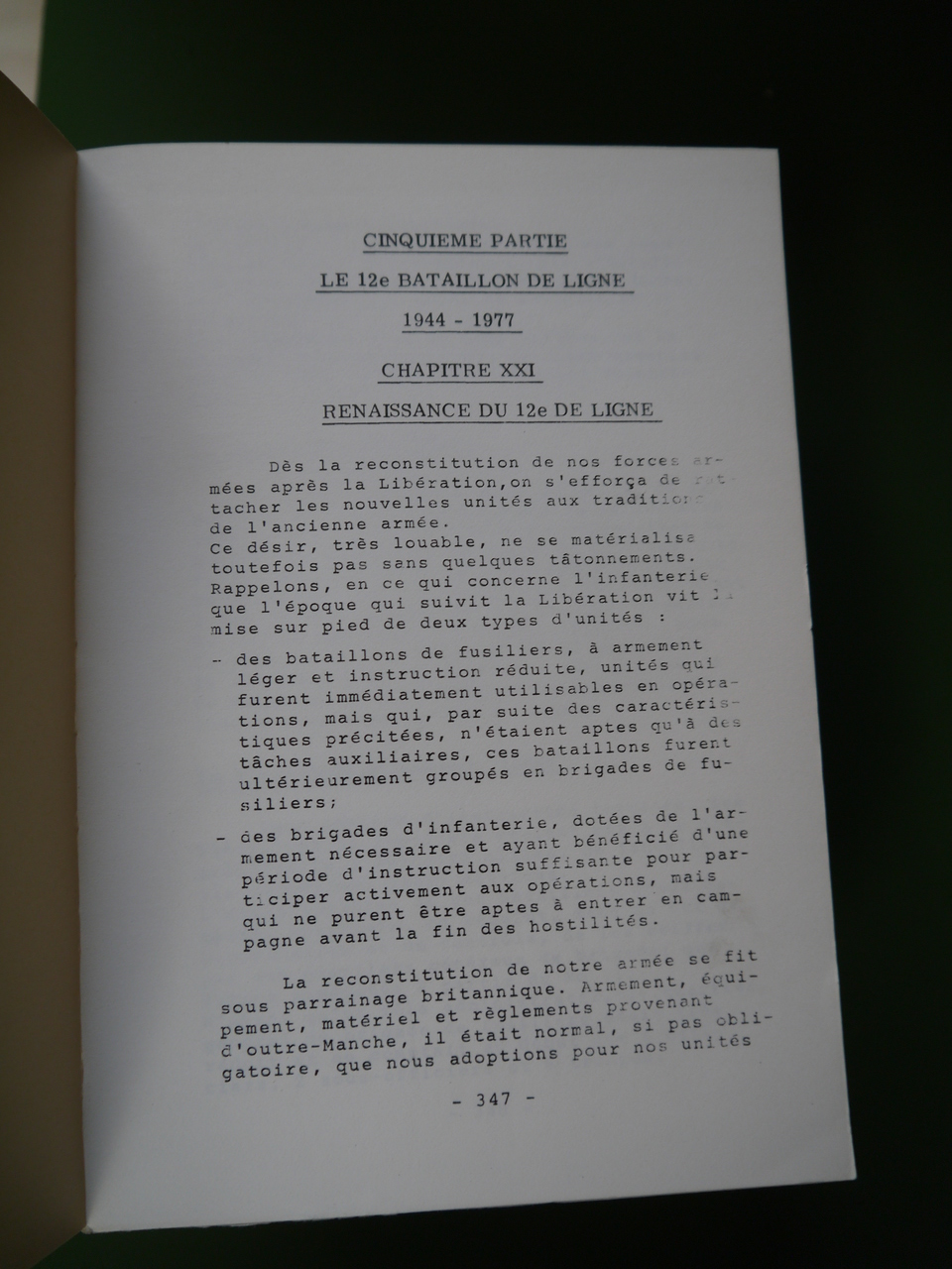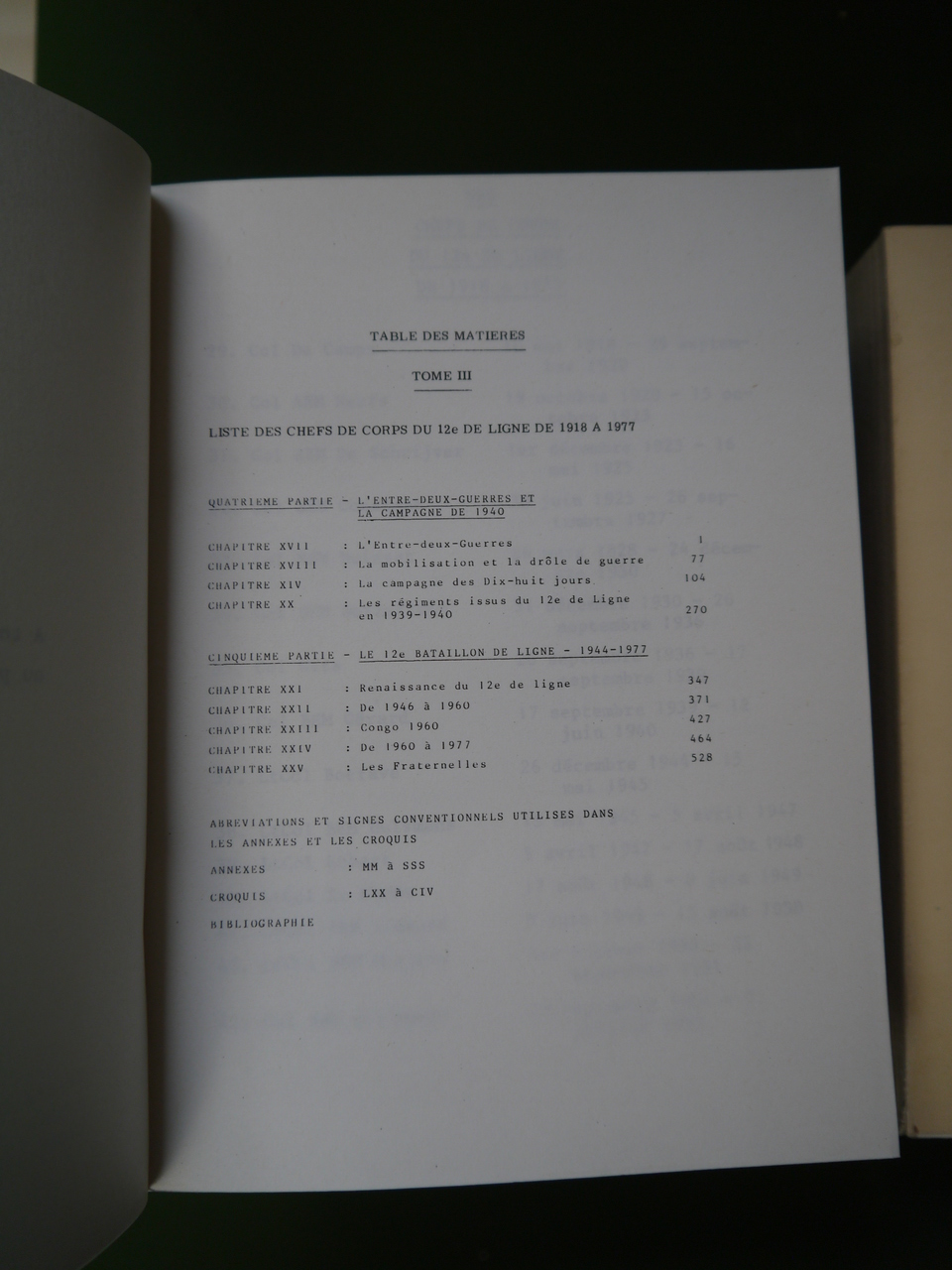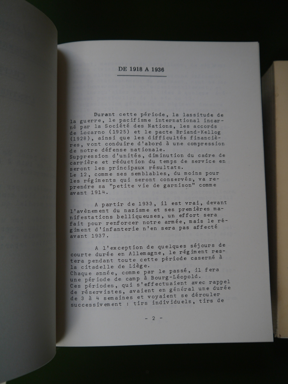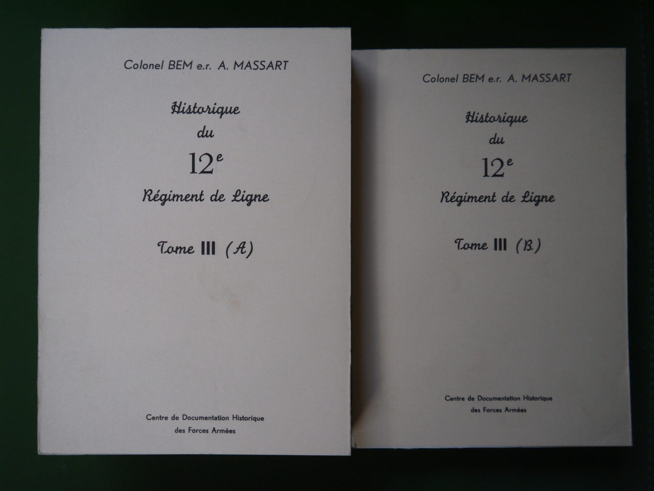 Historique du 12e régiment de ligne (tomes 3A et 3B), A. Massart, Centre de documentation historique des forces armées, 1976
