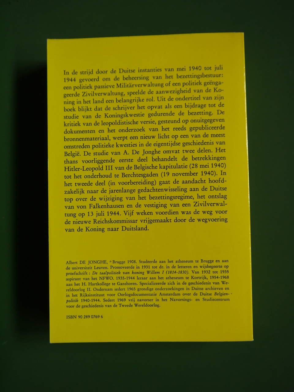 Ce volume se penche sur le sort politique de la Belgique au début de la seconde guerre mondiale, soit jusqu’au fameux entretien entre Hitler et Léopold III. Les années suivantes sont couvertes par d’autres titres de l’auteur.