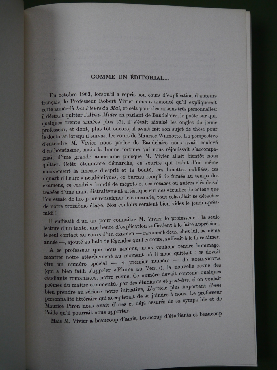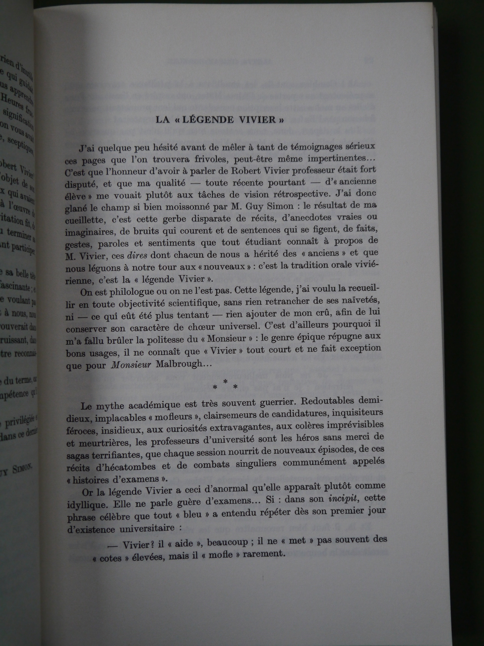 Ouvrage collectif en hommage à la carrière d’écrivain et de professeur de Robert Vivier, dont je recommande l’étonnant « Délivrez-nous du mal ». Exemplaire dédicacé par Vivier.