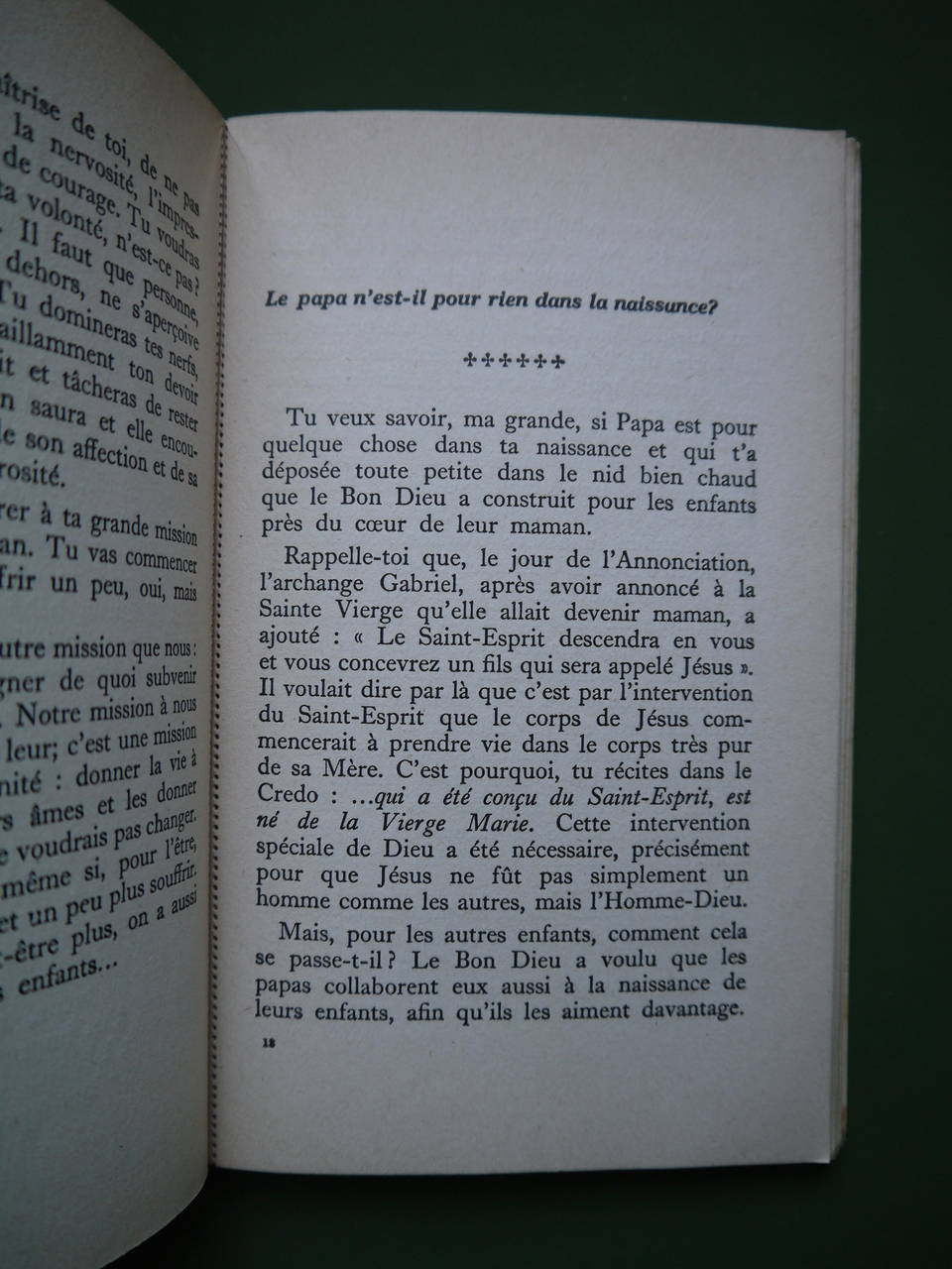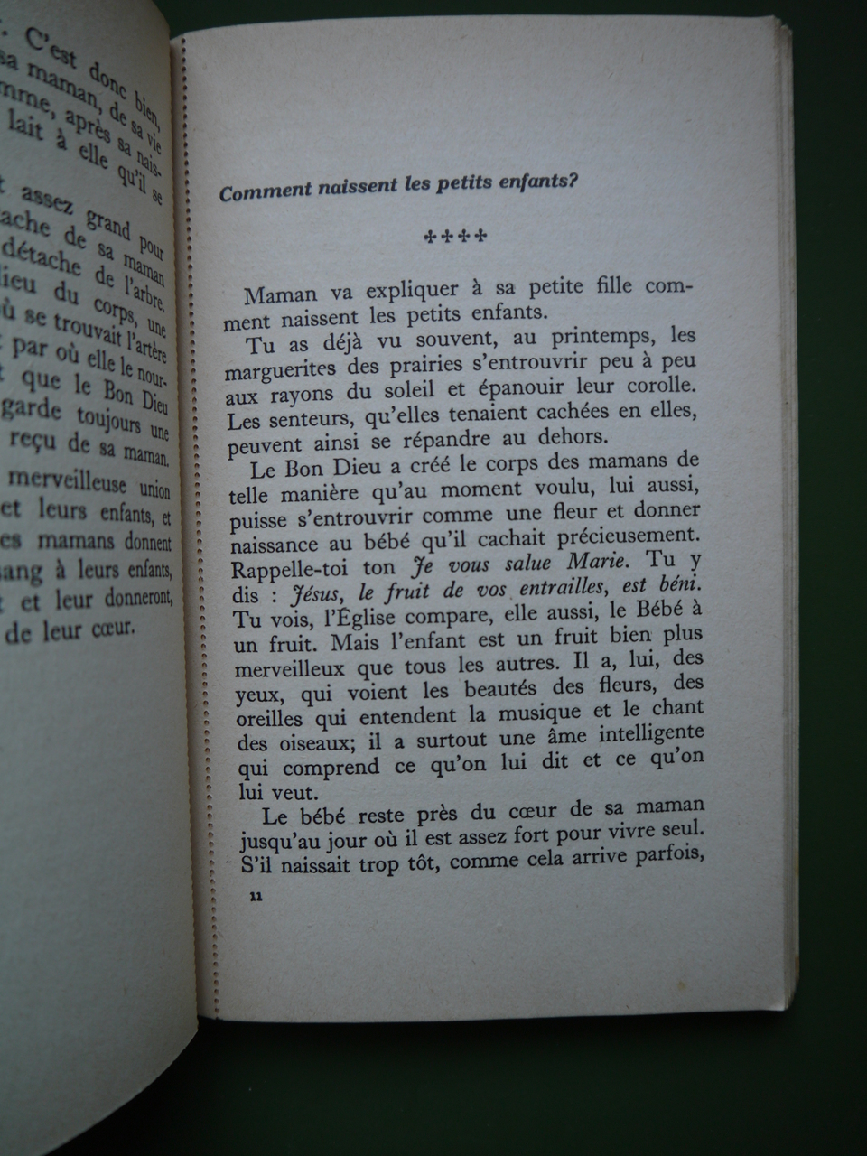 Etonnamment destiné à la jeunesse des « milieux ruraux »… Ce qui sans doute explique que la réponse à la question « Comment naissent les petits enfants » parle de fruits.