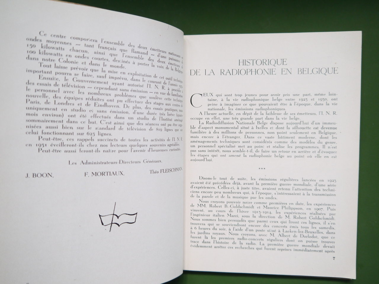 Le rapport annuel de 1951 complété par divers articles de présentation de l’INR, dont un sur la construction du champ d’émetteurs de Wavre-Overijse.